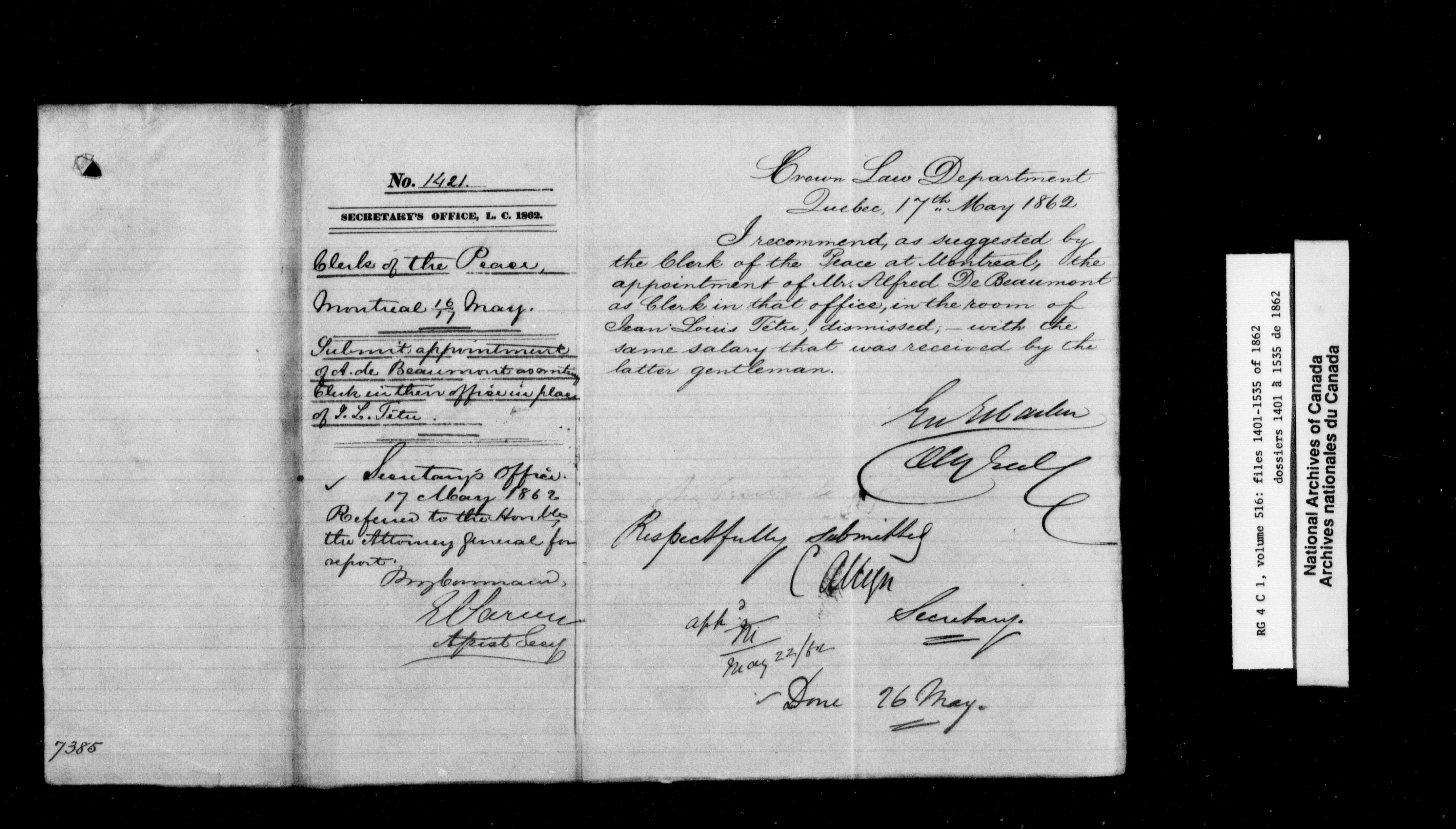 Canada East : Provincial Secretary numbered correspondence files, 1839-1867 - 2761