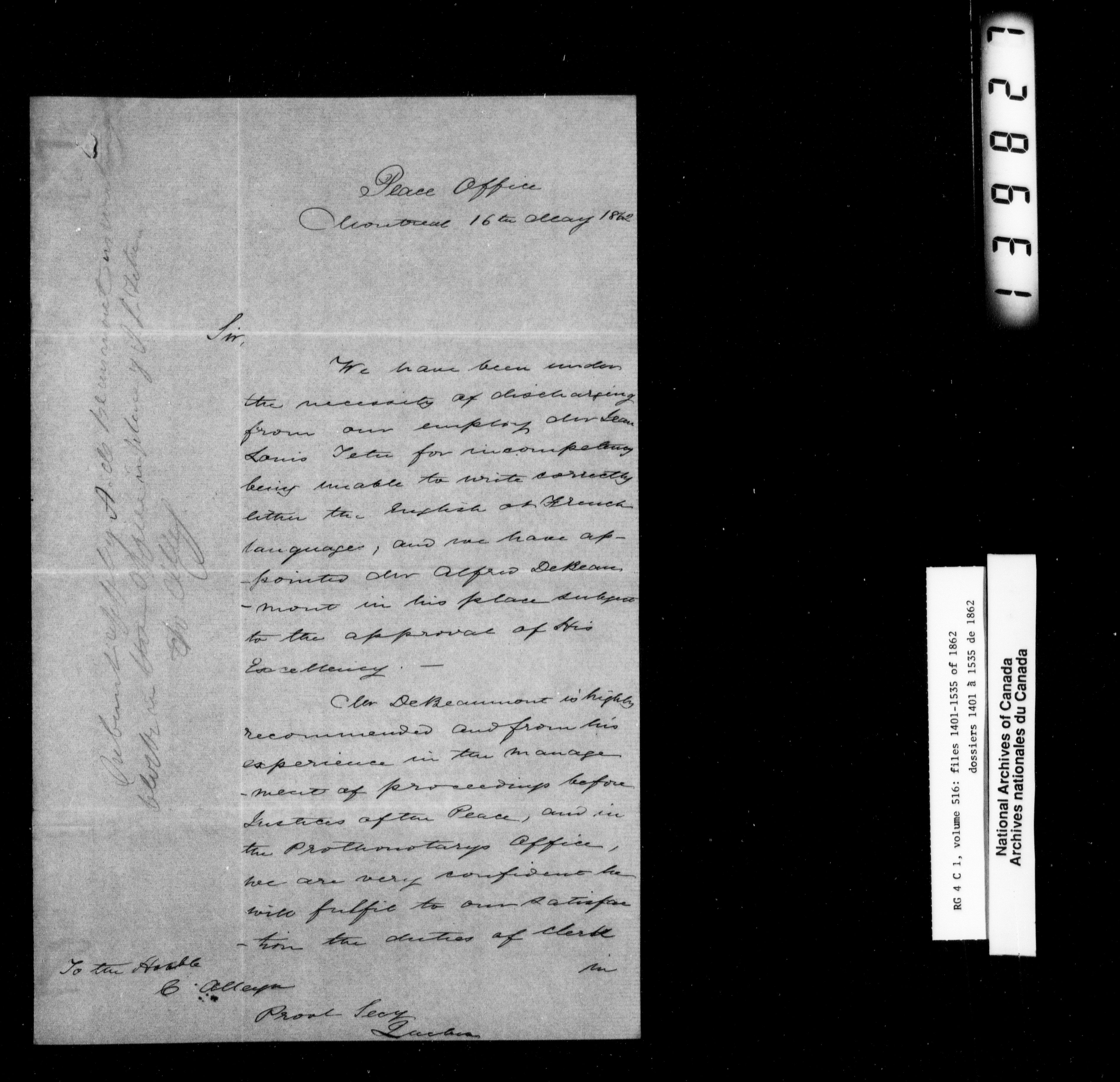 Canada East : Provincial Secretary numbered correspondence files, 1839-1867 - 2761