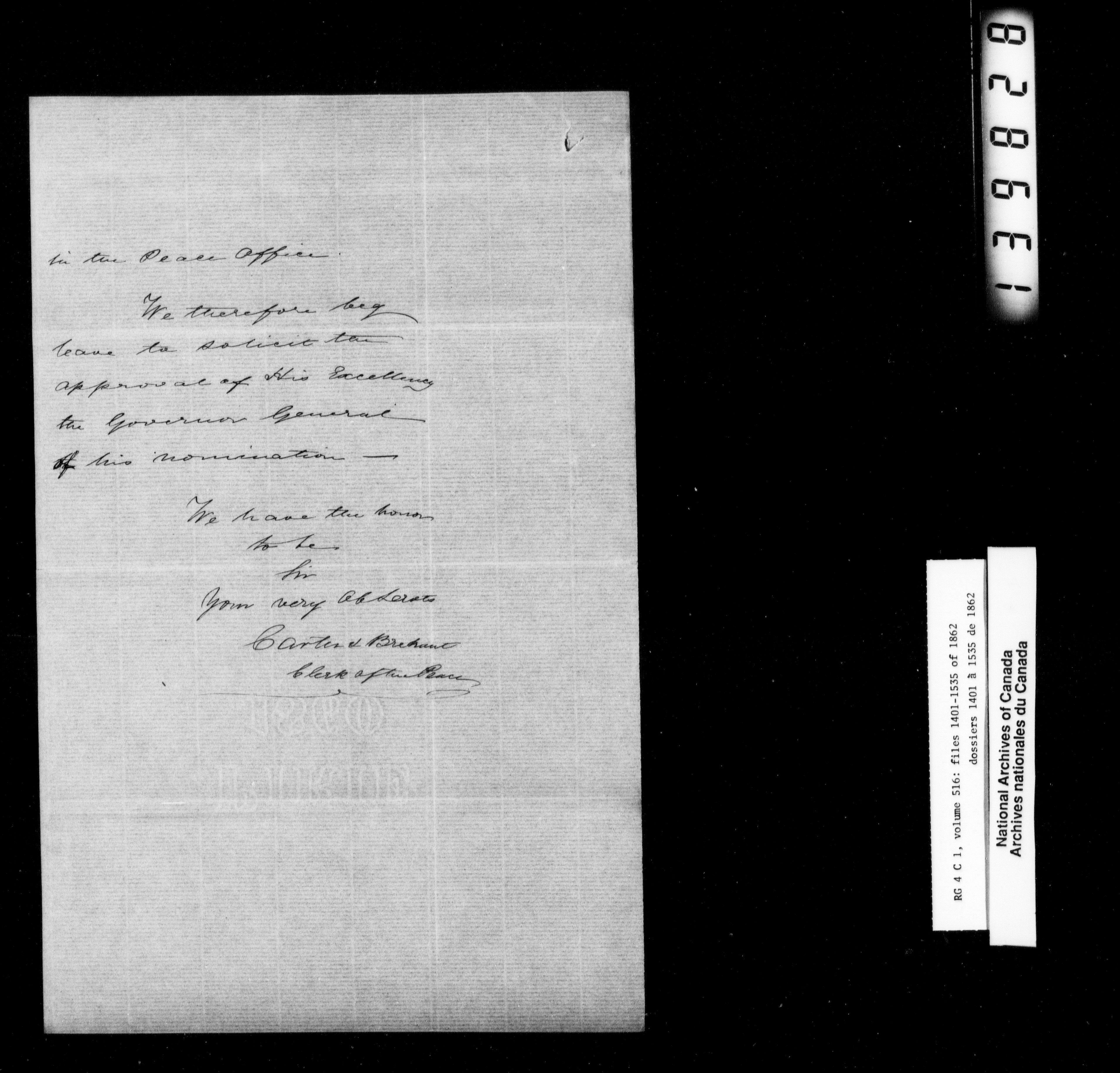 Canada East : Provincial Secretary numbered correspondence files, 1839-1867 - 2761