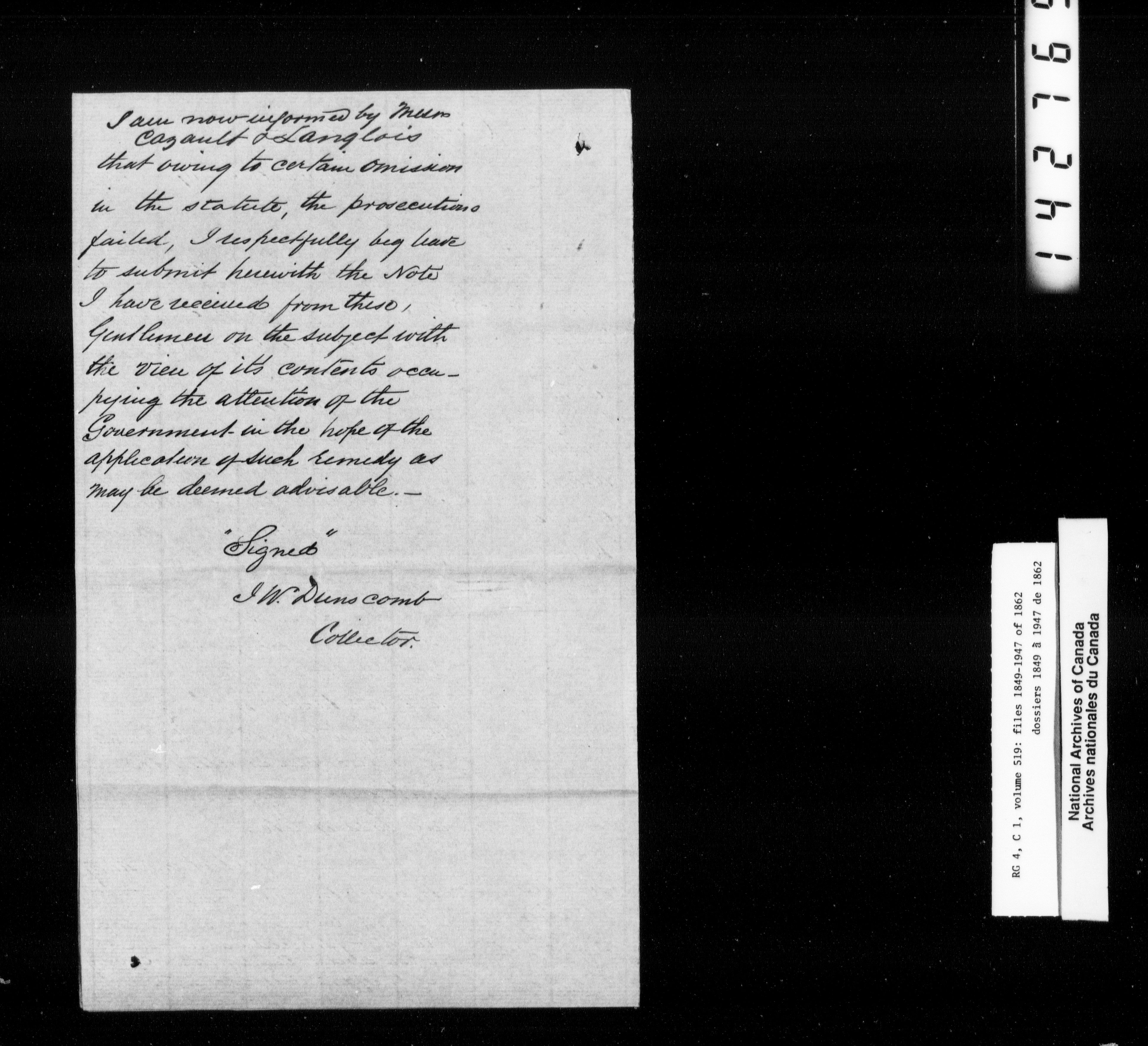 Canada East : Provincial Secretary numbered correspondence files, 1839-1867 - 2762