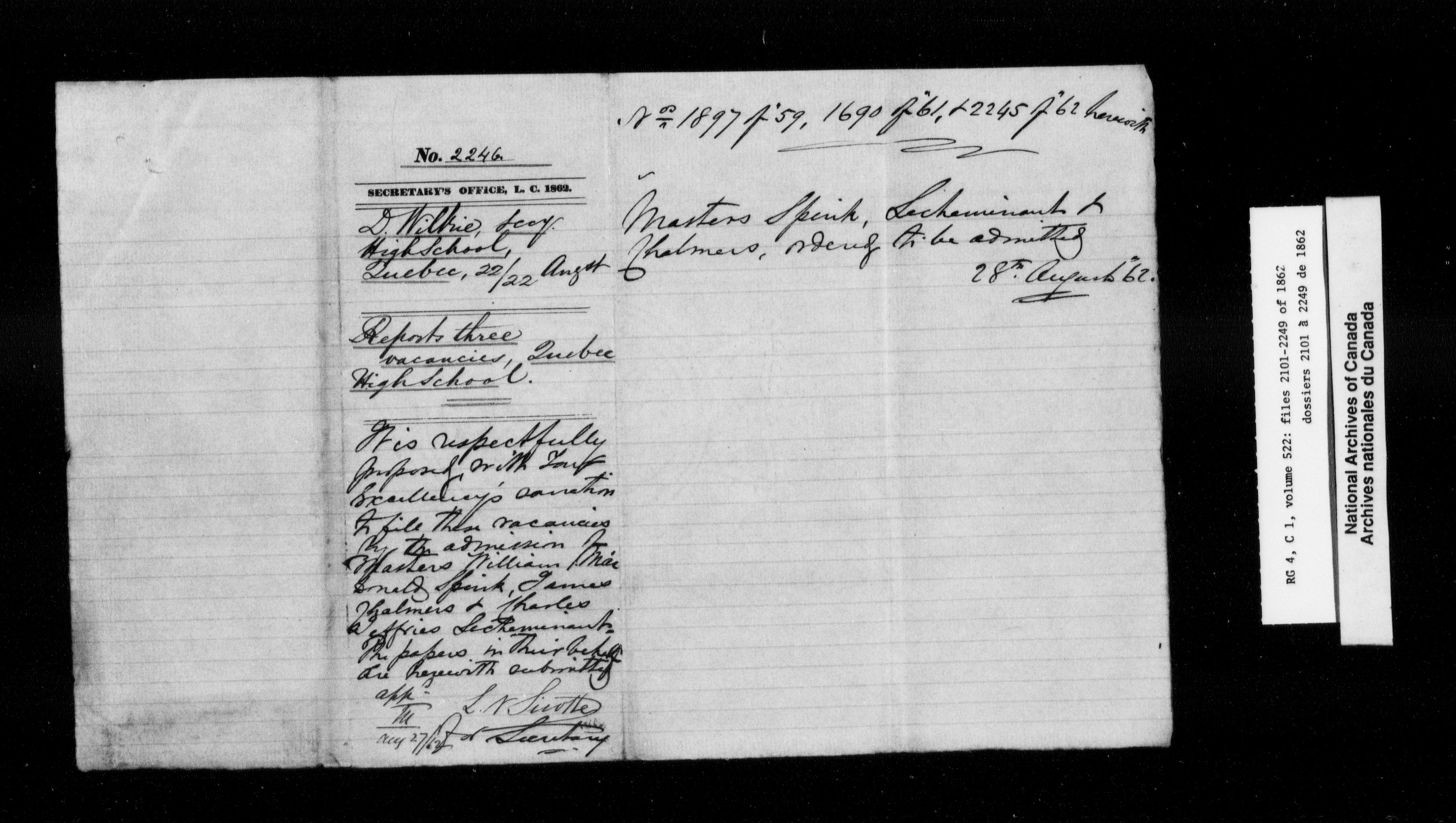 Canada East : Provincial Secretary numbered correspondence files, 1839-1867 - 2764