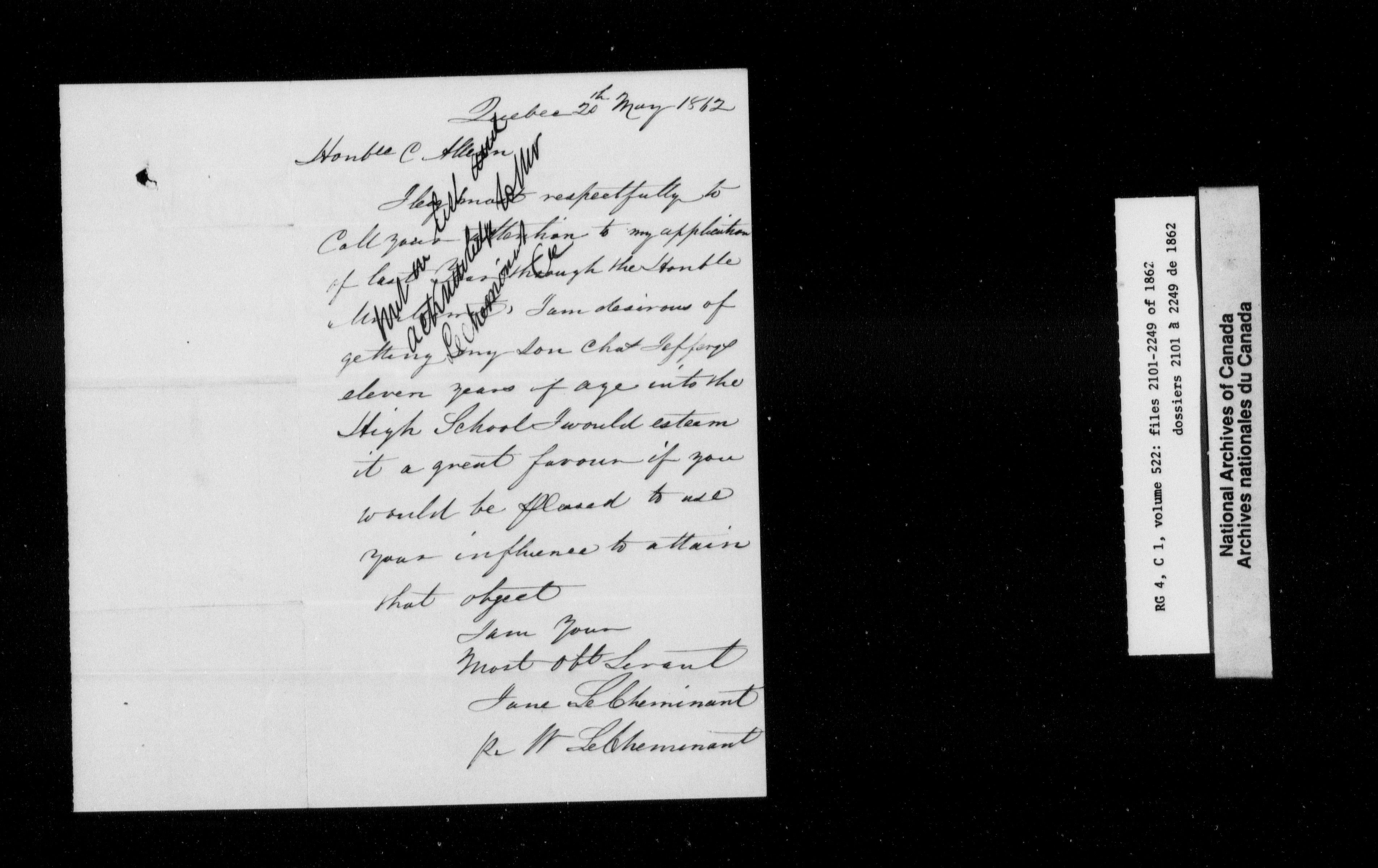 Canada East : Provincial Secretary numbered correspondence files, 1839-1867 - 2764