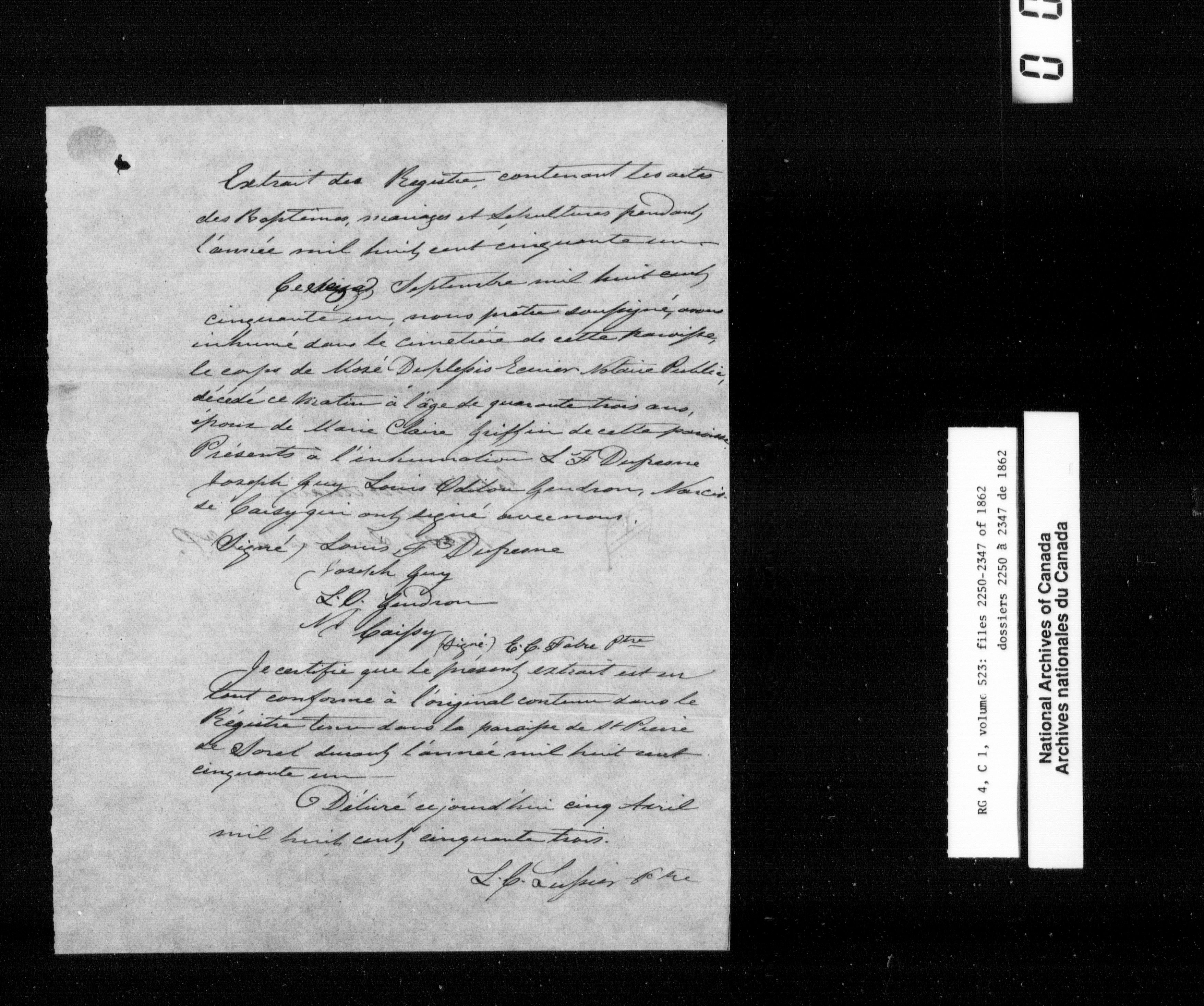 Canada East : Provincial Secretary numbered correspondence files, 1839-1867 - 2765