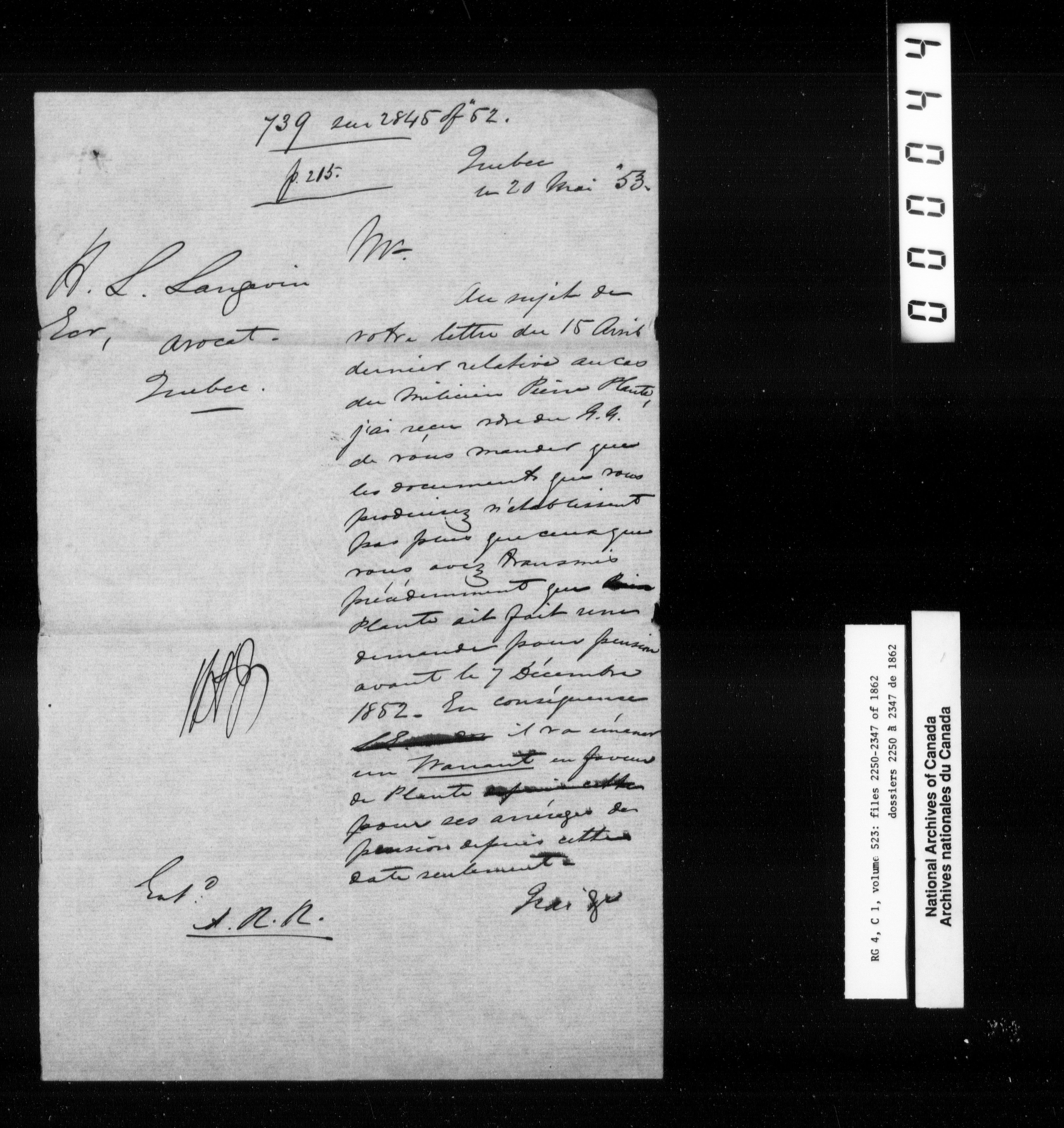 Canada East : Provincial Secretary numbered correspondence files, 1839-1867 - 2765
