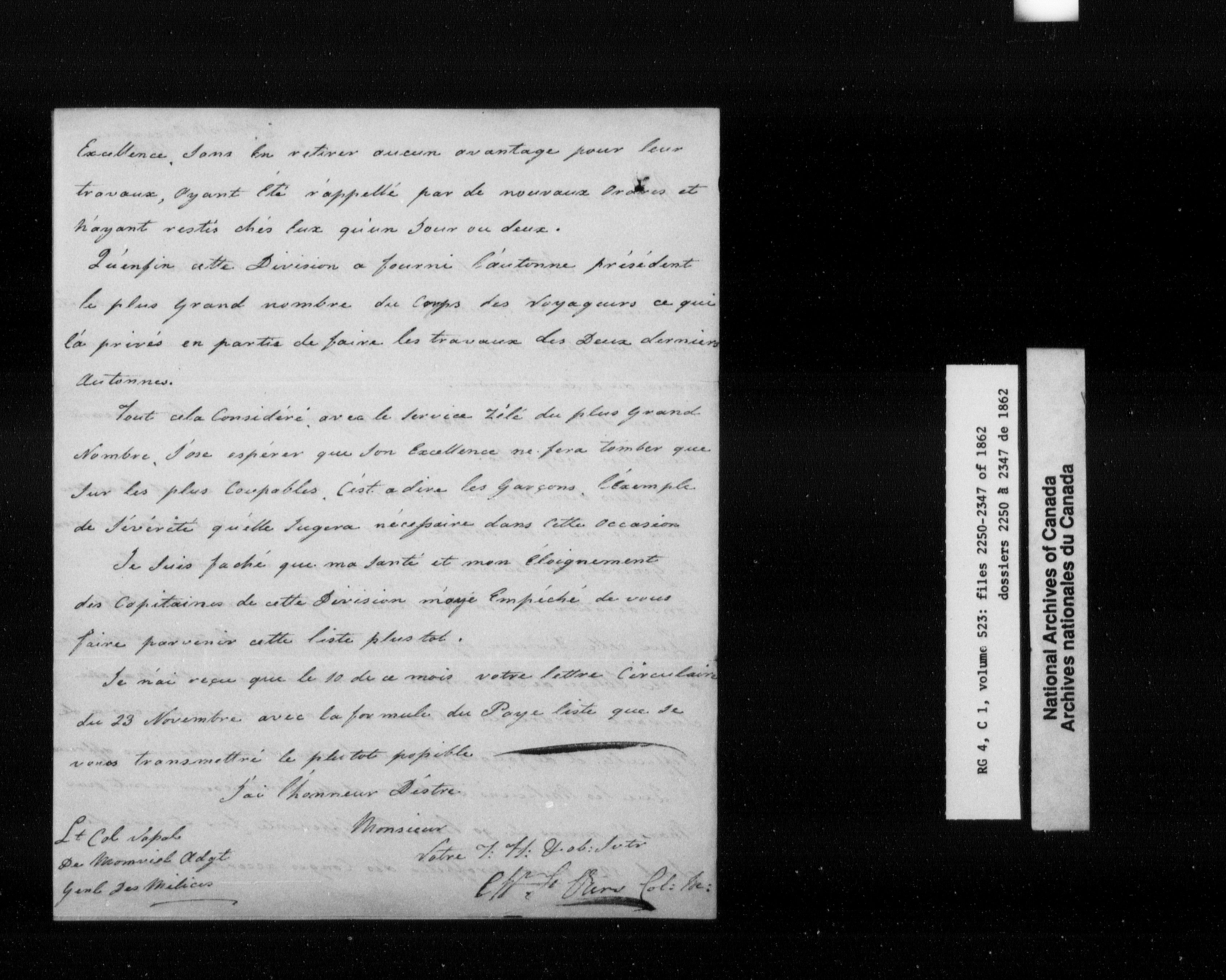 Canada East : Provincial Secretary numbered correspondence files, 1839-1867 - 2765