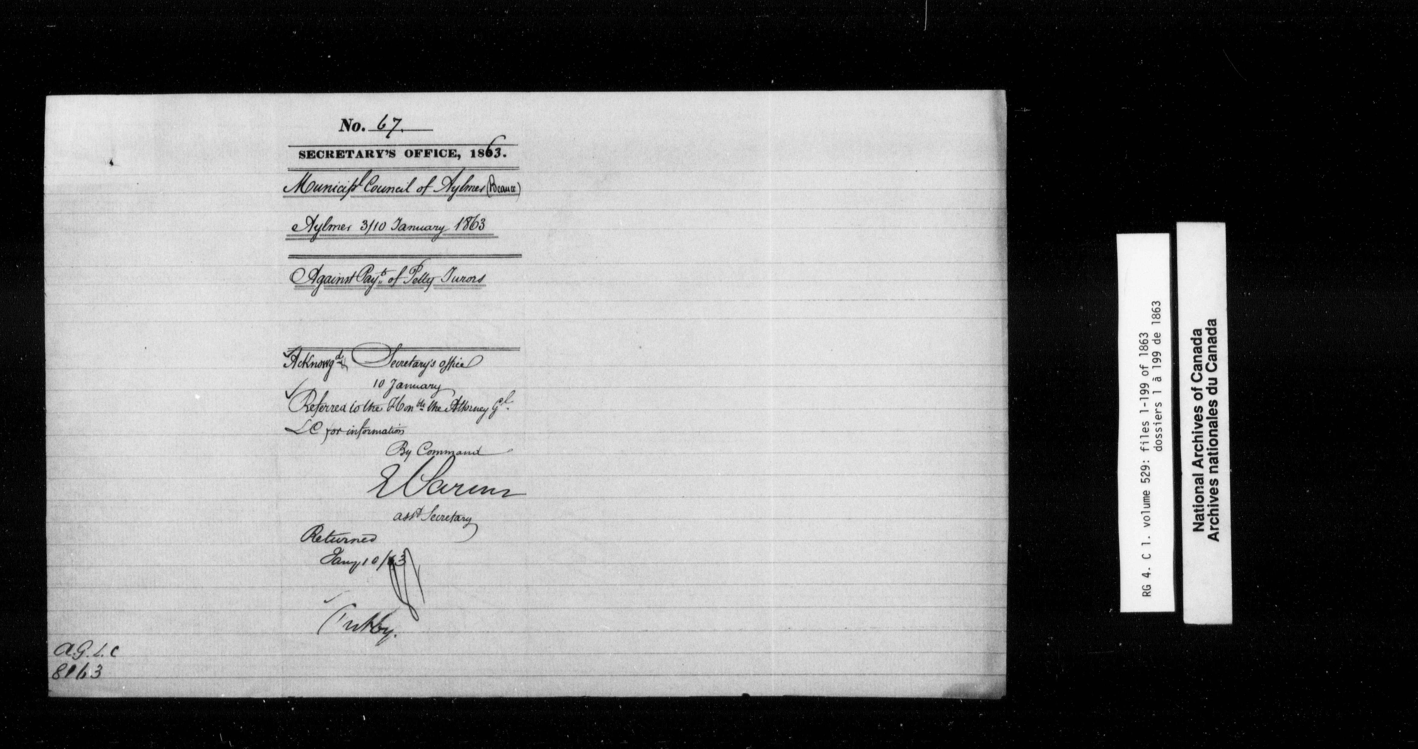Canada East : Provincial Secretary numbered correspondence files, 1839-1867 - 2768