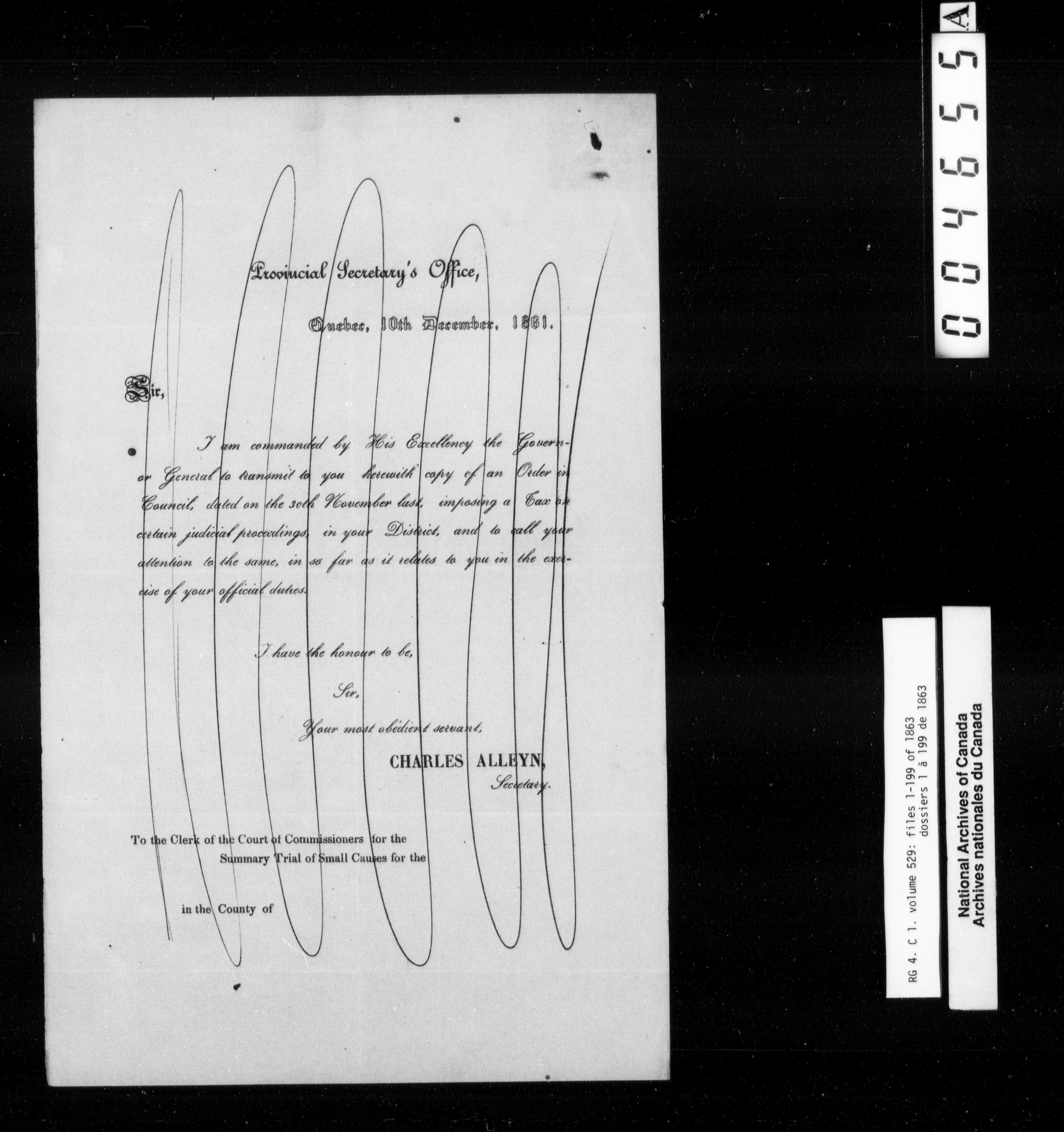 Canada East : Provincial Secretary numbered correspondence files, 1839-1867 - 2768