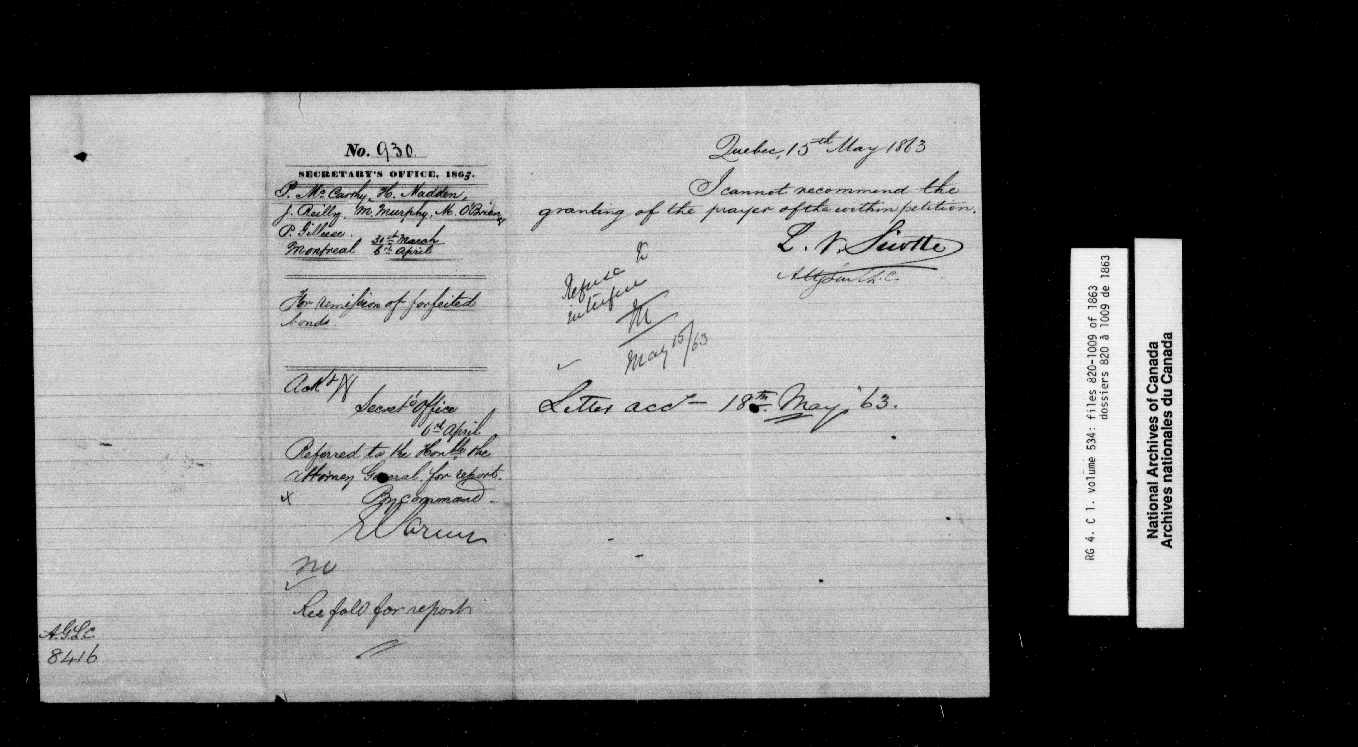 Canada East : Provincial Secretary numbered correspondence files, 1839-1867 - 2770