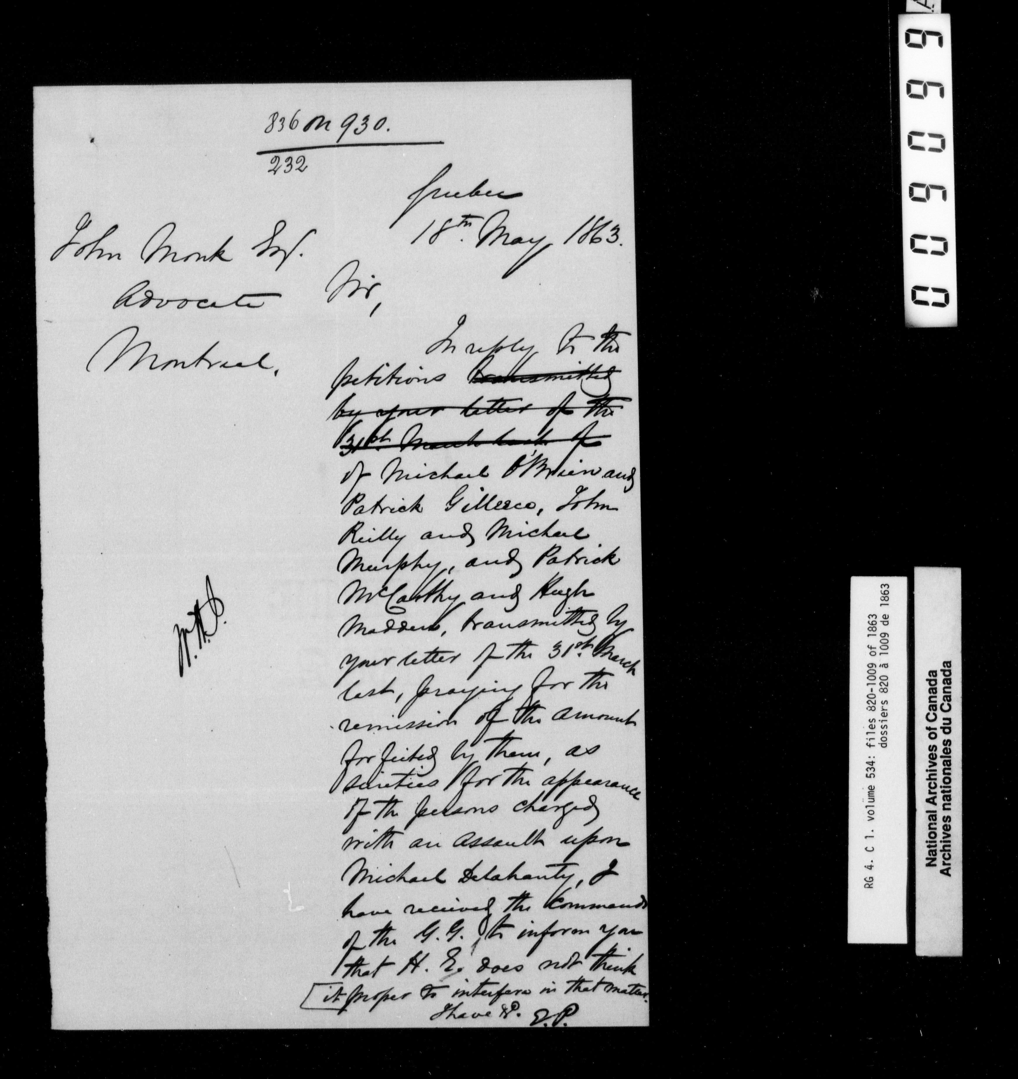 Canada East : Provincial Secretary numbered correspondence files, 1839-1867 - 2770