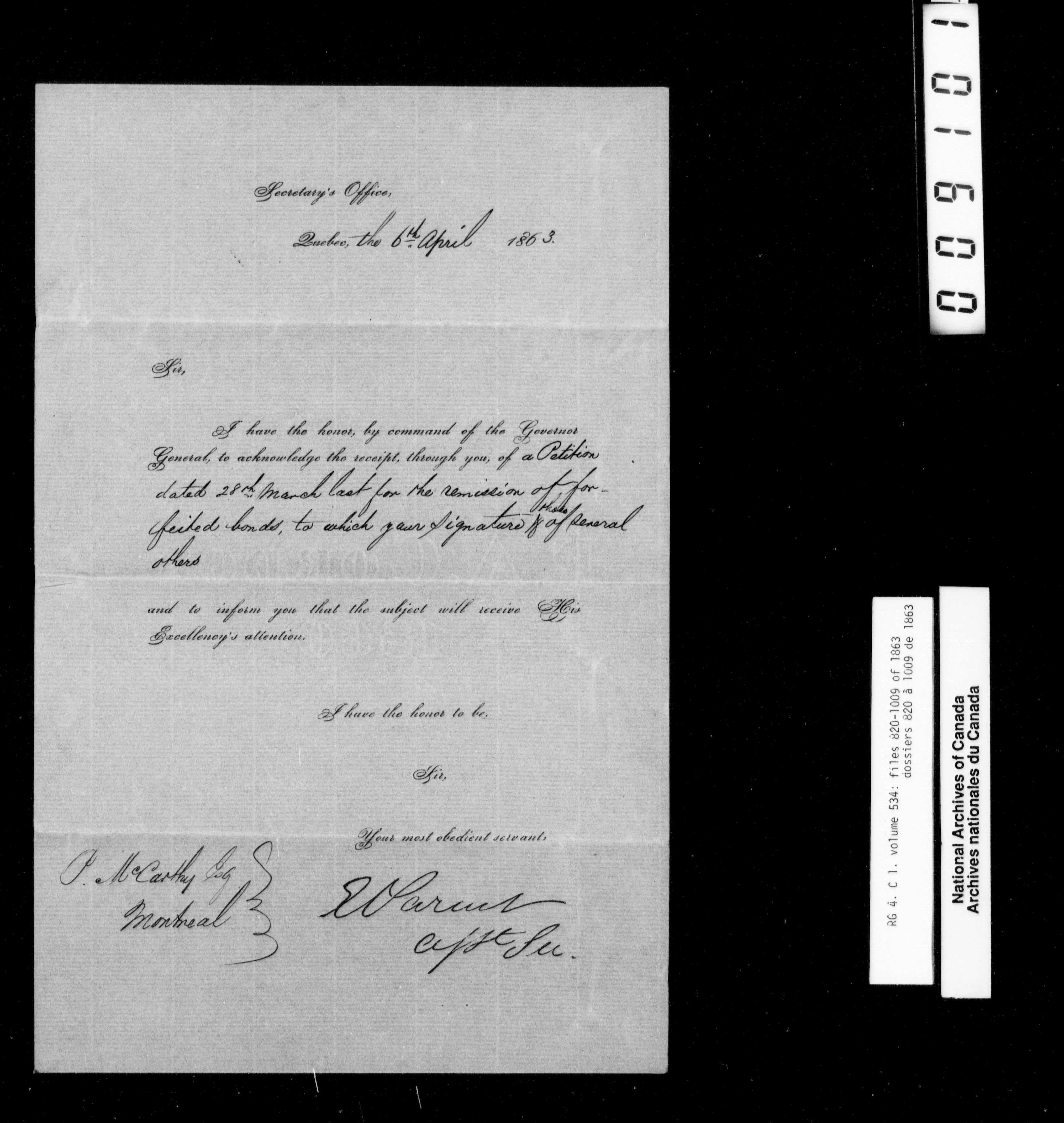 Canada East : Provincial Secretary numbered correspondence files, 1839-1867 - 2770