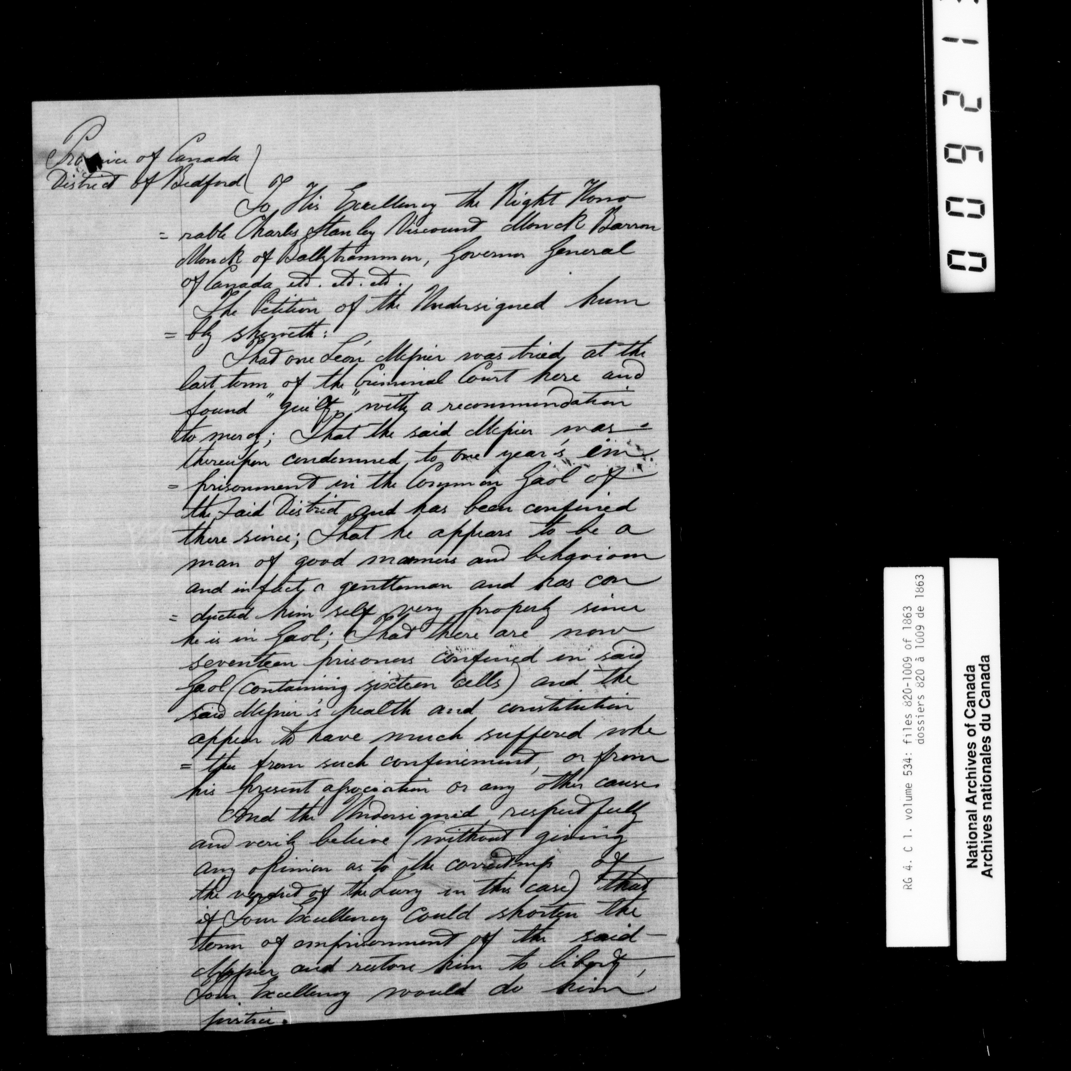 Canada East : Provincial Secretary numbered correspondence files, 1839-1867 - 2771