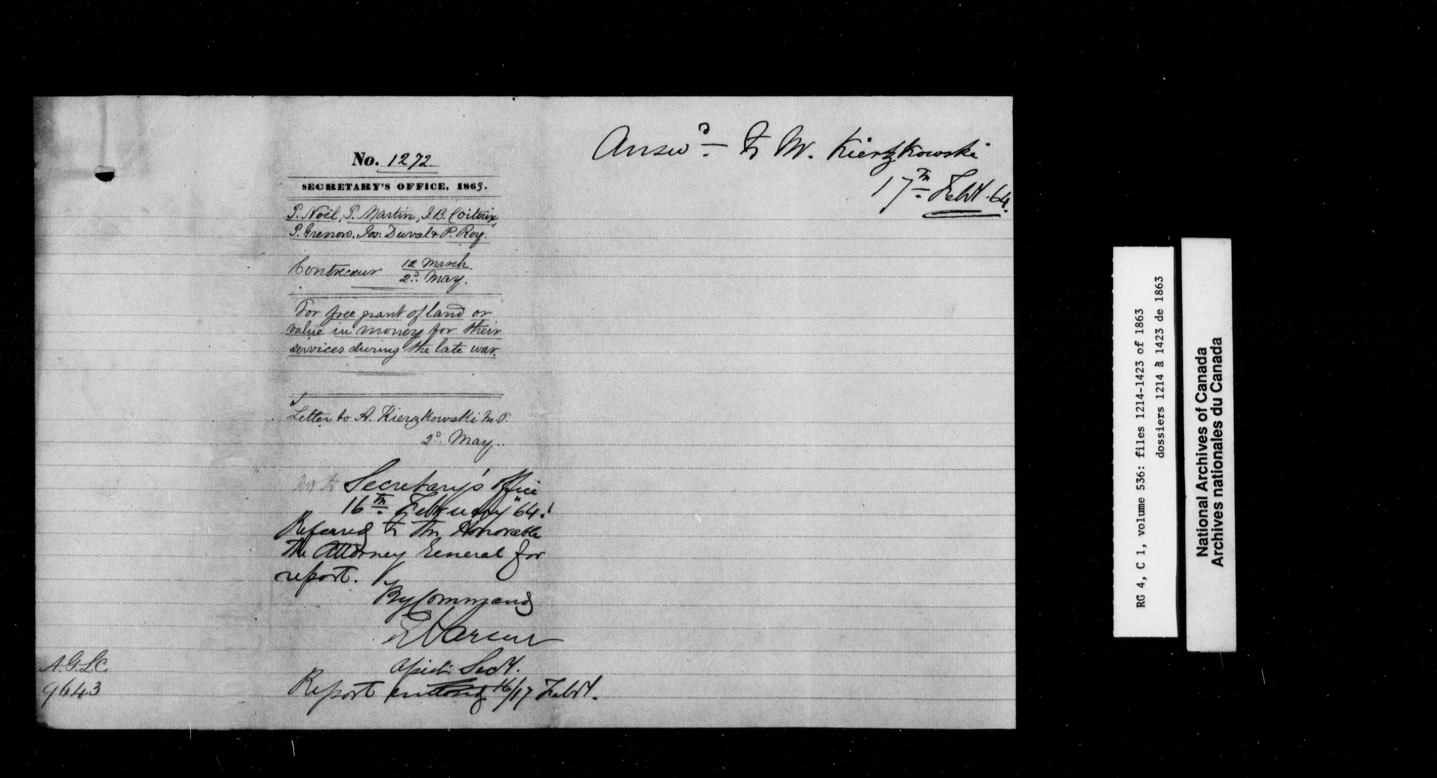 Canada East : Provincial Secretary numbered correspondence files, 1839-1867 - 2772