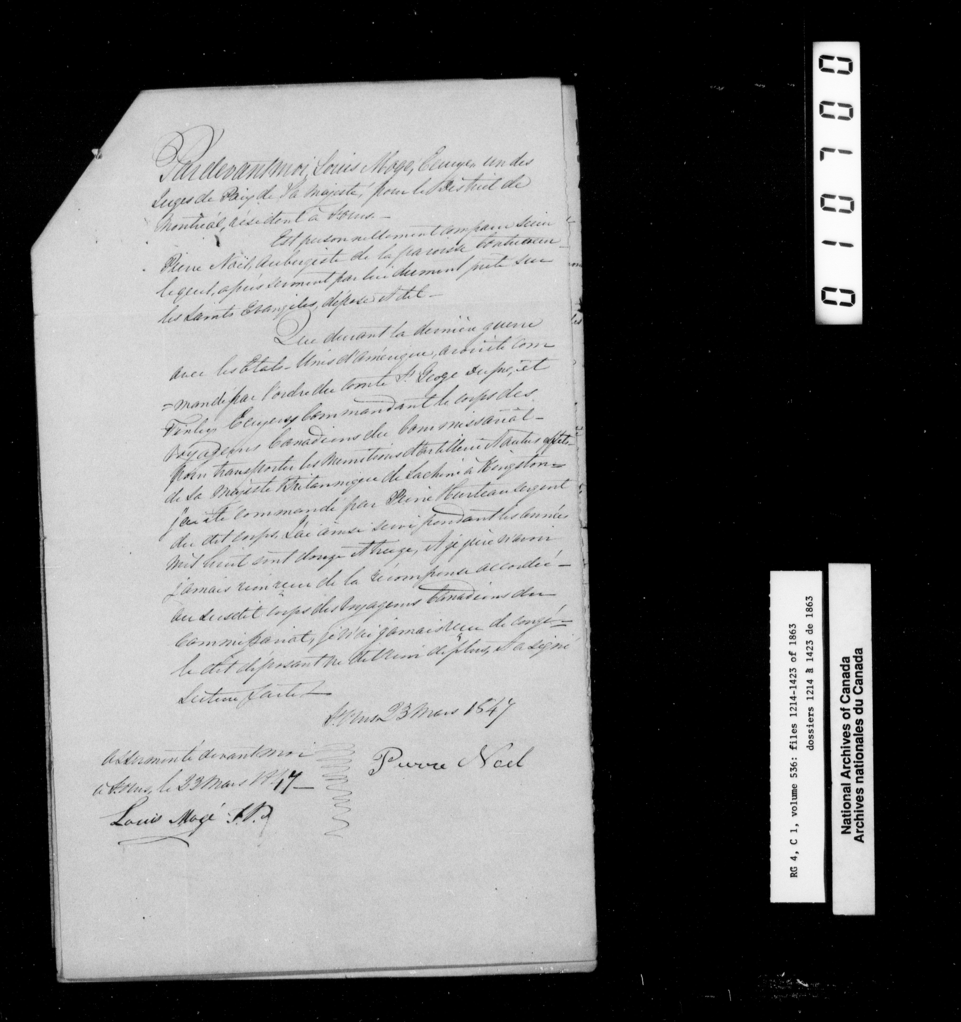 Canada East : Provincial Secretary numbered correspondence files, 1839-1867 - 2772