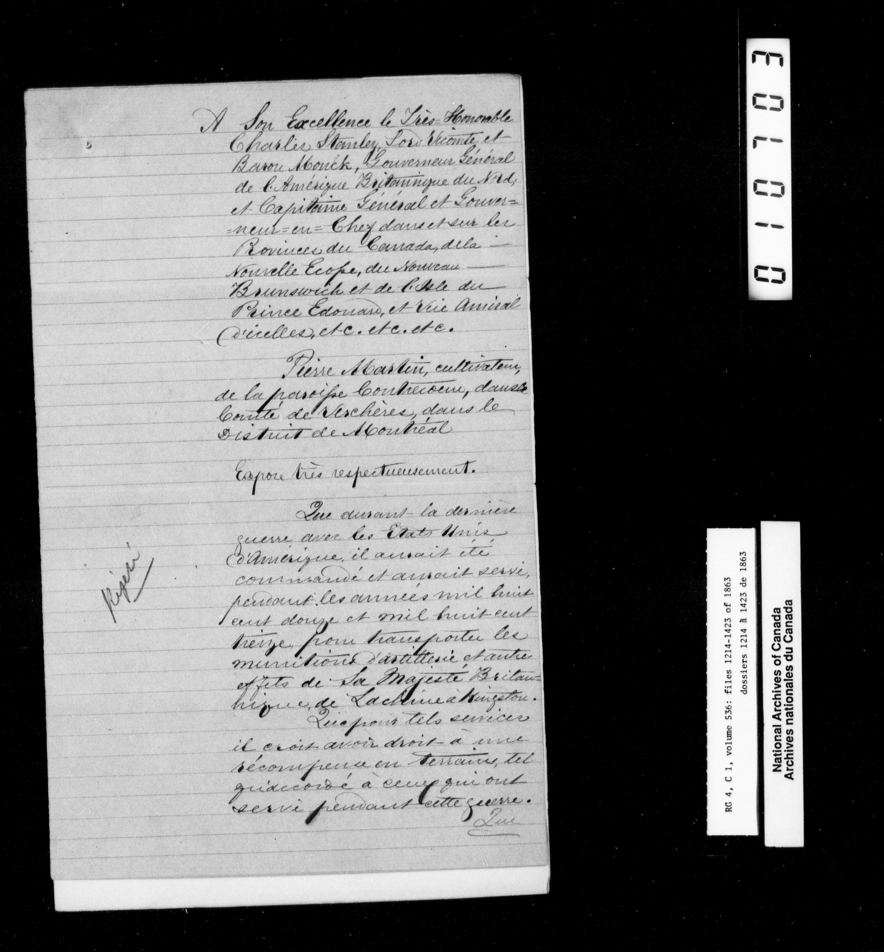 Canada East : Provincial Secretary numbered correspondence files, 1839-1867 - 2772