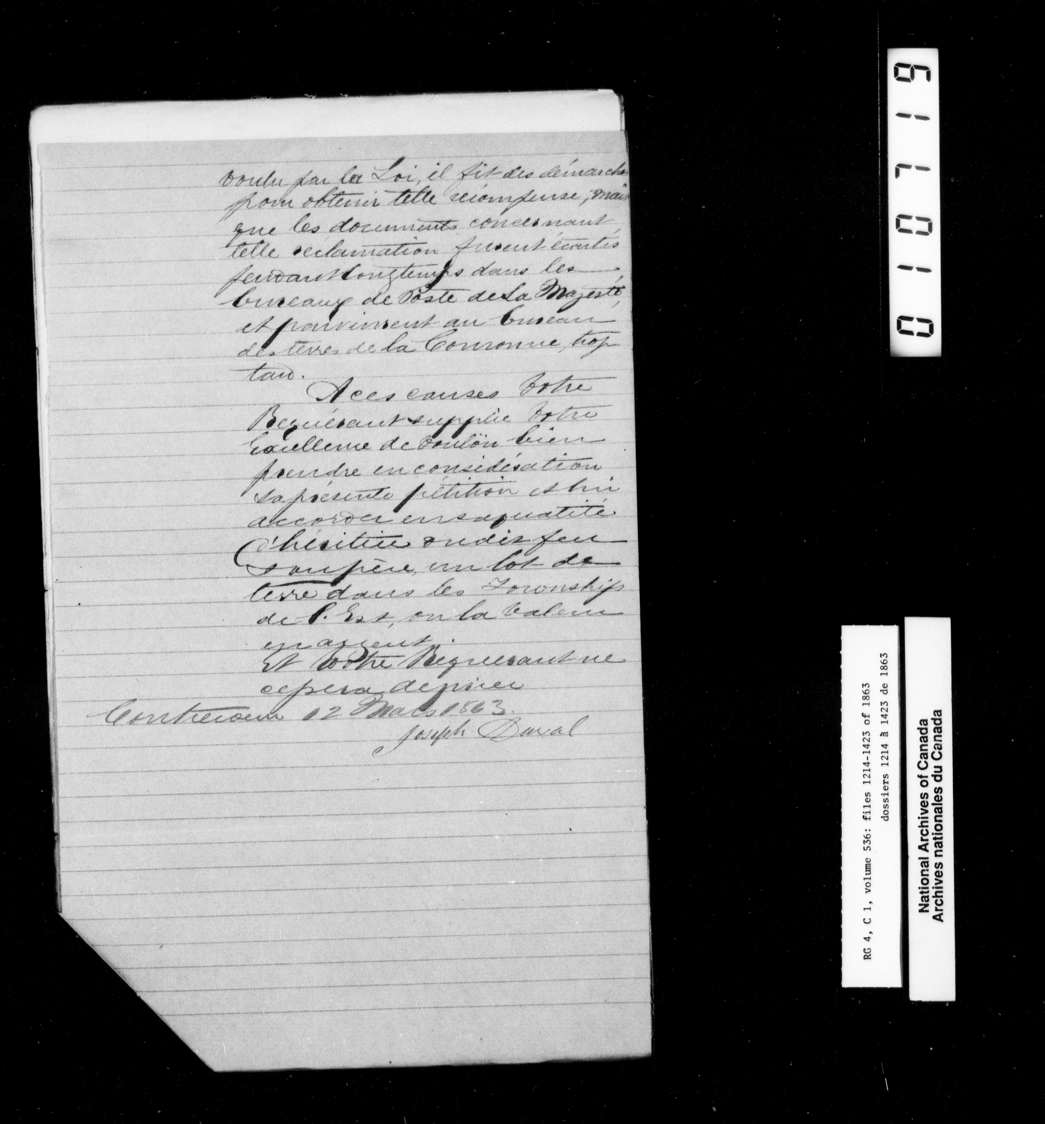 Canada East : Provincial Secretary numbered correspondence files, 1839-1867 - 2772