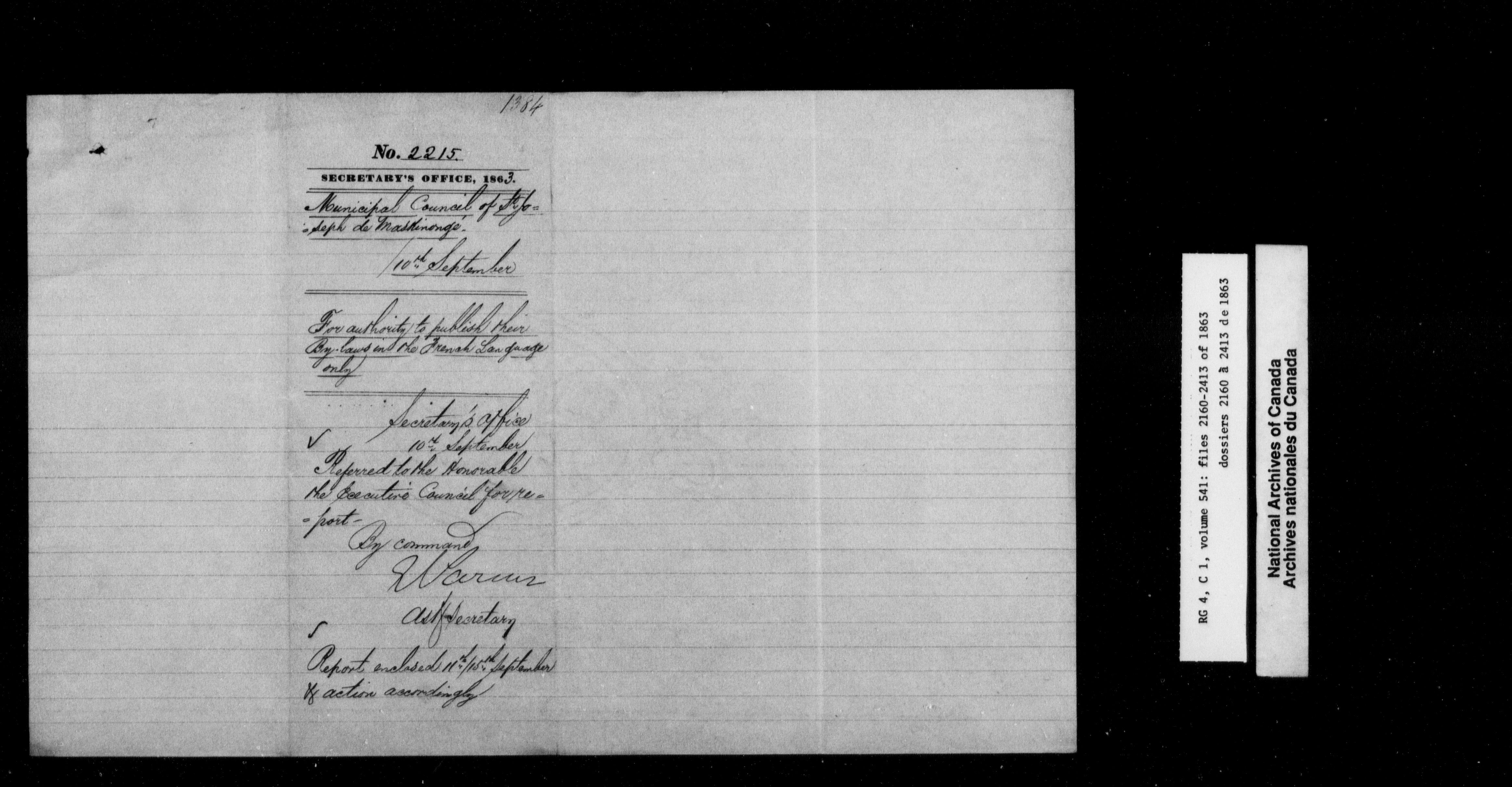 Canada East : Provincial Secretary numbered correspondence files, 1839-1867 - 2774