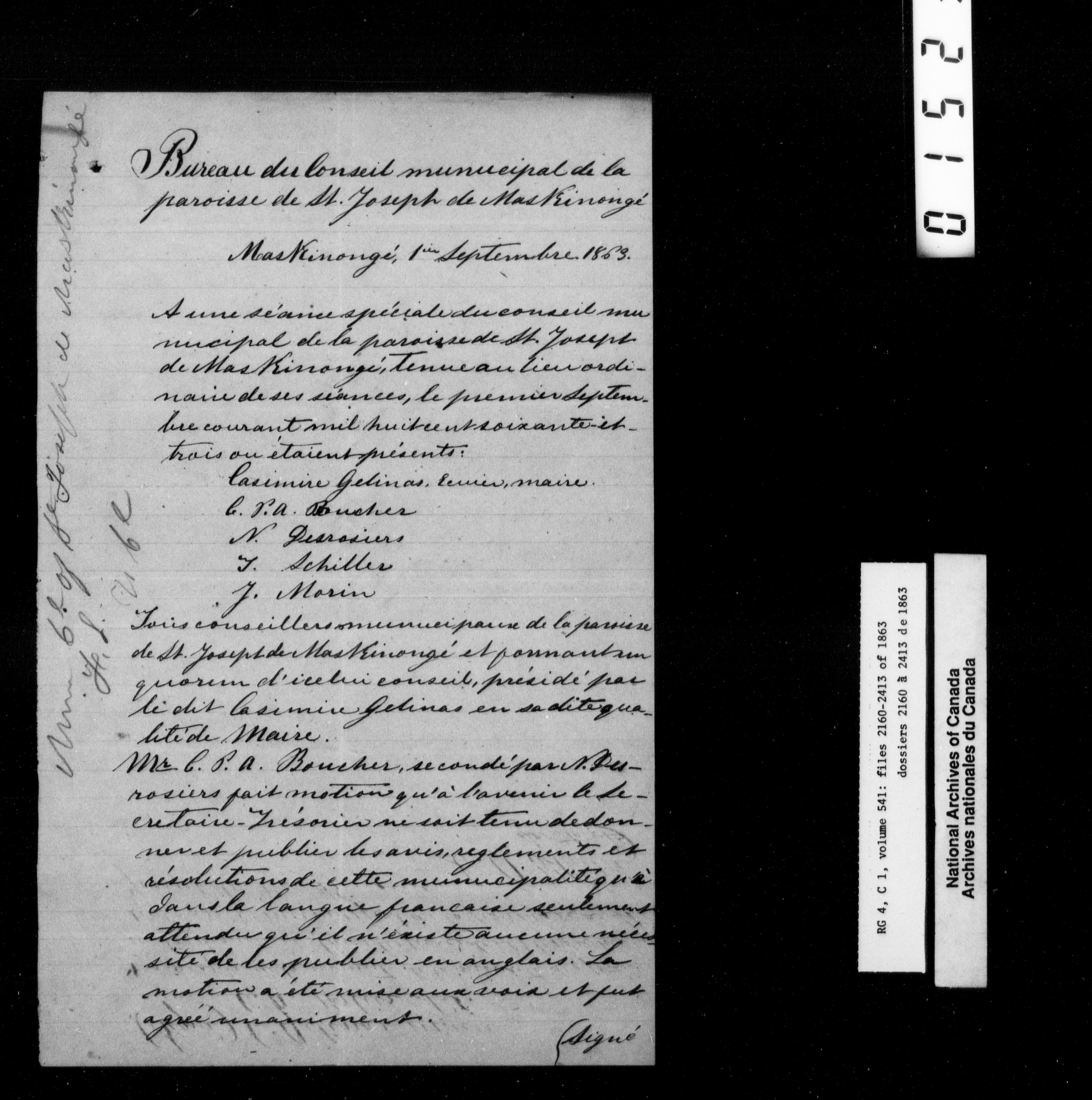 Canada East : Provincial Secretary numbered correspondence files, 1839-1867 - 2774