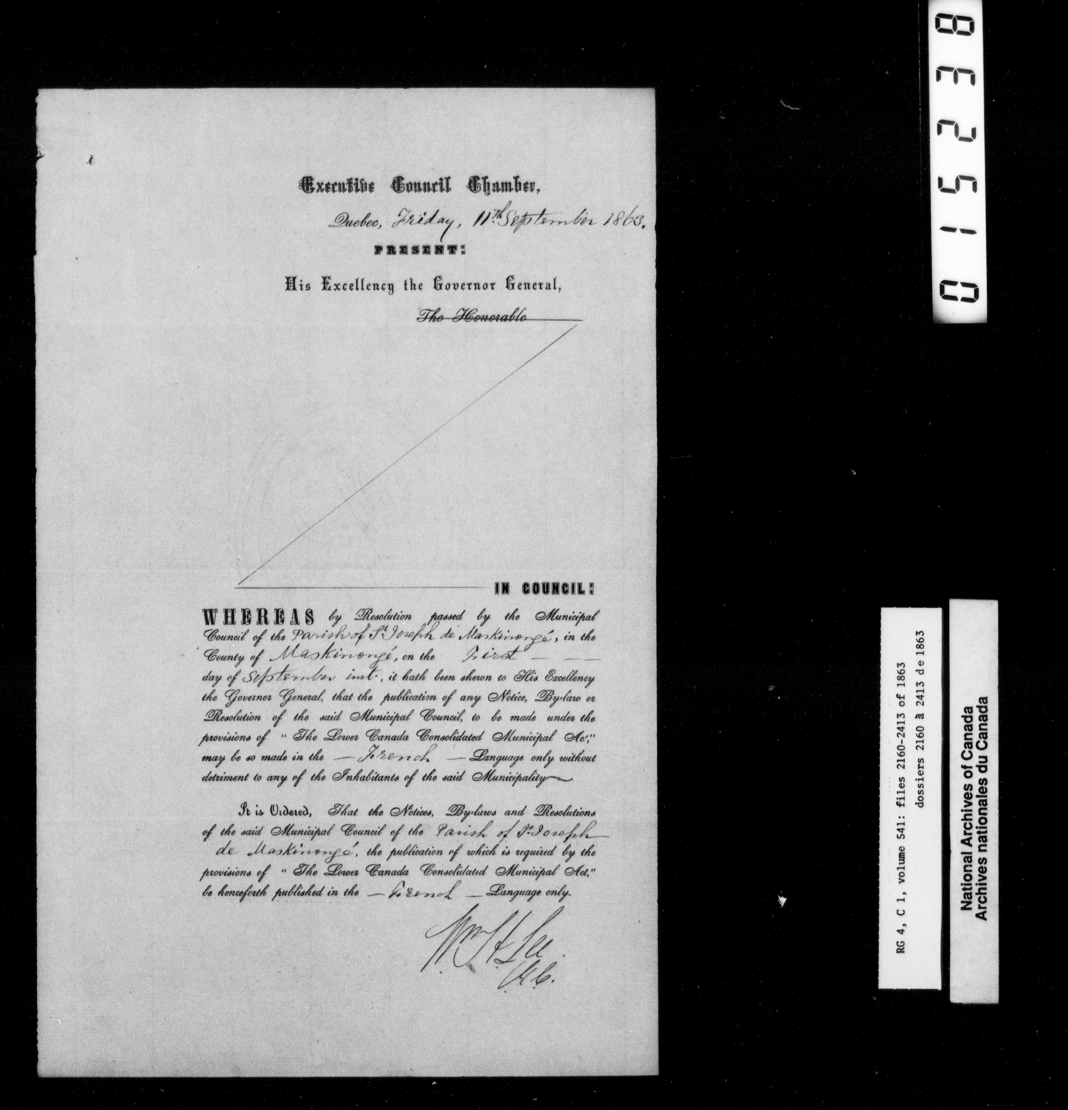 Canada East : Provincial Secretary numbered correspondence files, 1839-1867 - 2774