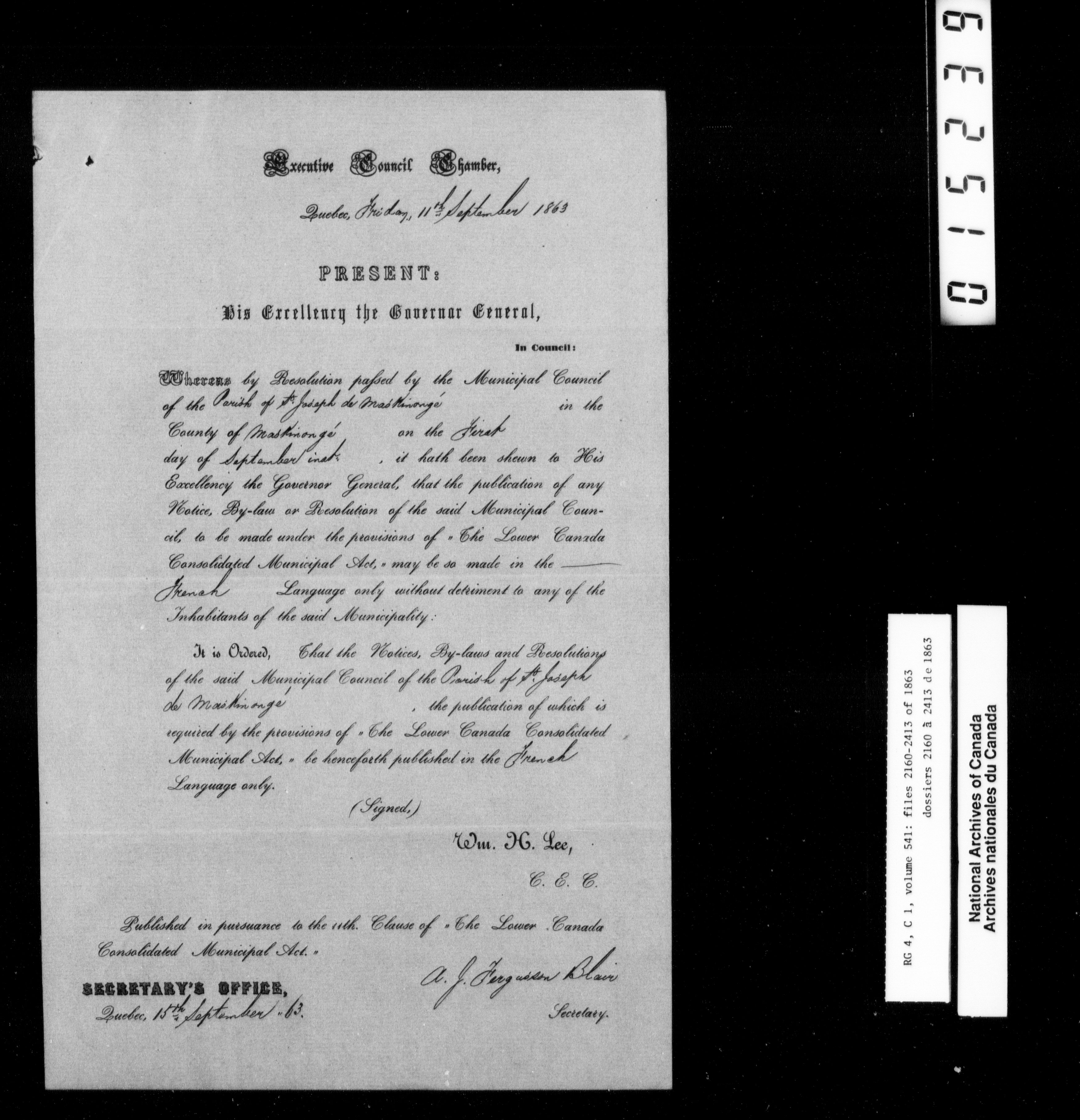 Canada East : Provincial Secretary numbered correspondence files, 1839-1867 - 2774