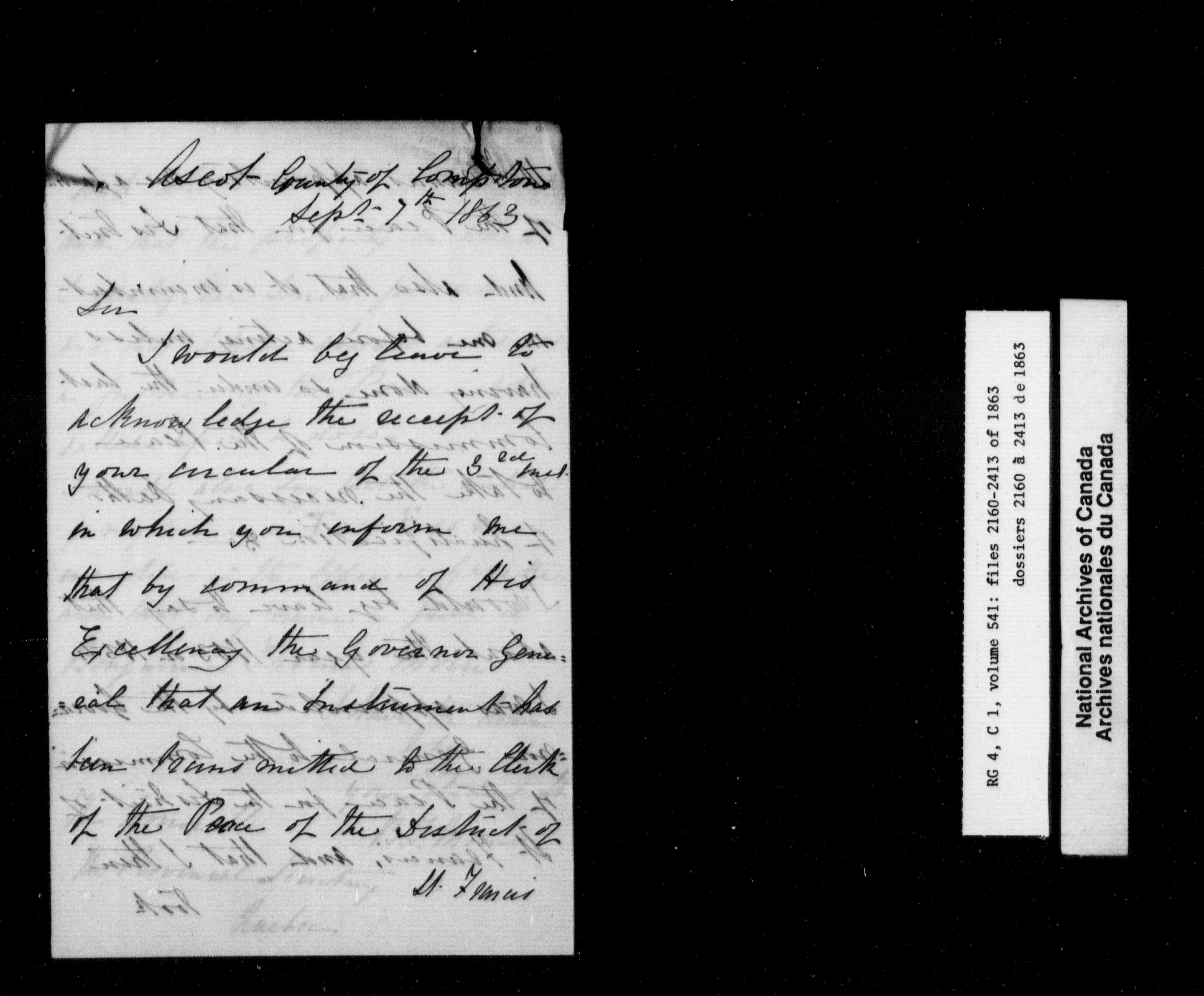 Canada East : Provincial Secretary numbered correspondence files, 1839-1867 - 2774