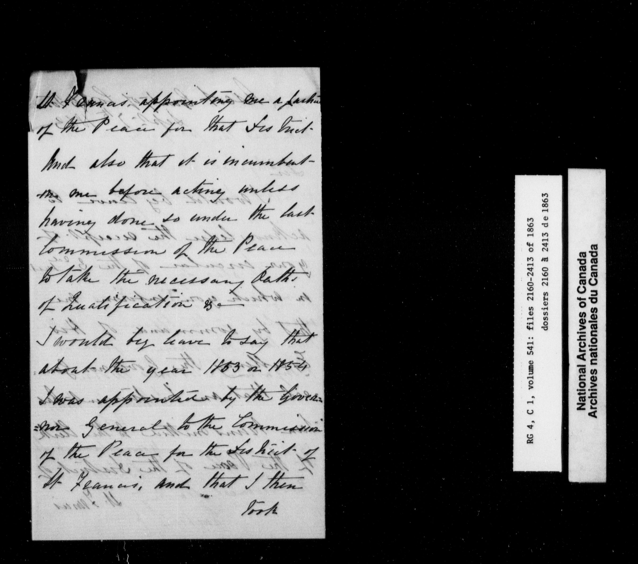 Canada East : Provincial Secretary numbered correspondence files, 1839-1867 - 2774