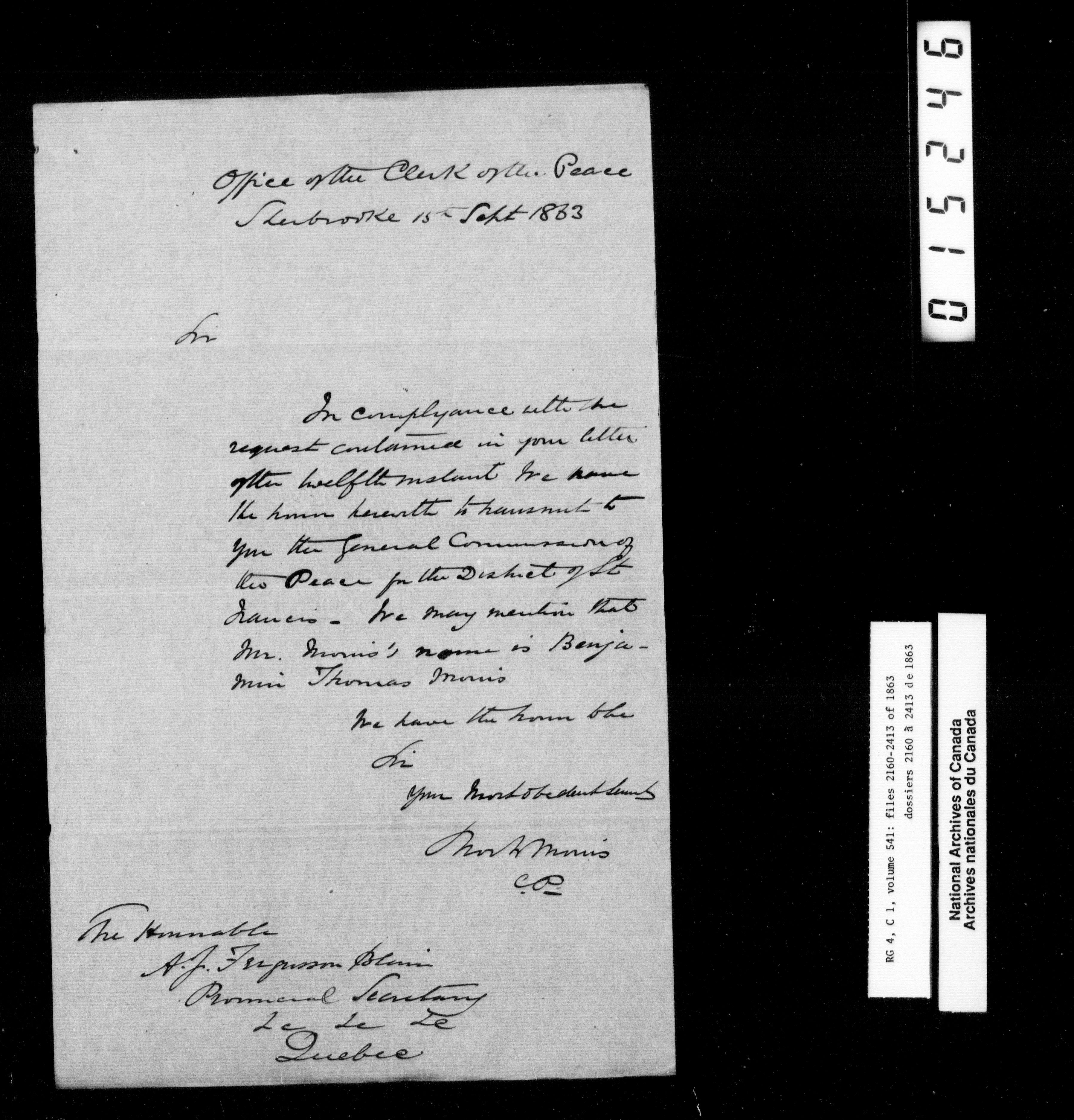 Canada East : Provincial Secretary numbered correspondence files, 1839-1867 - 2774