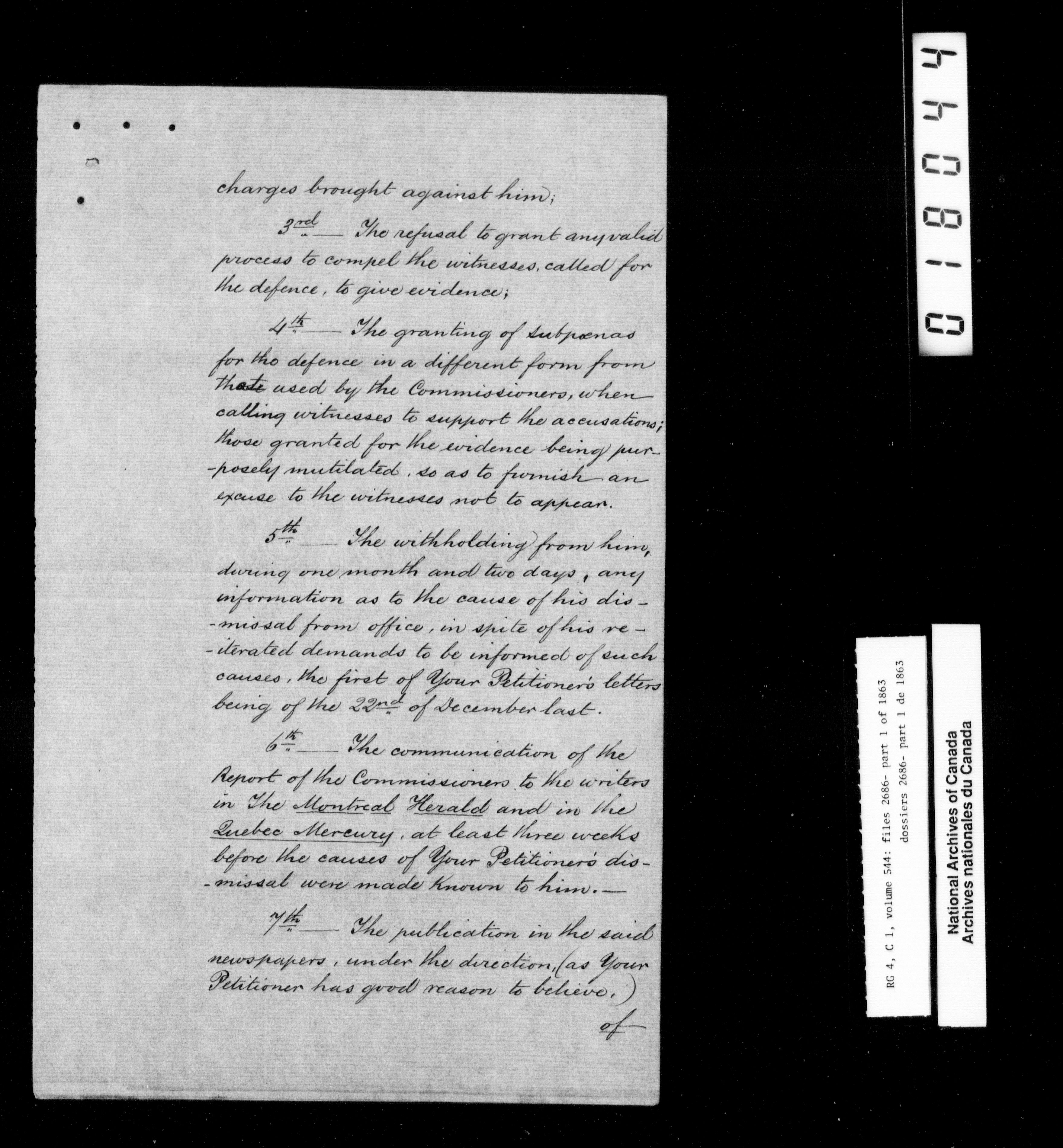 Canada East : Provincial Secretary numbered correspondence files, 1839-1867 - 2776