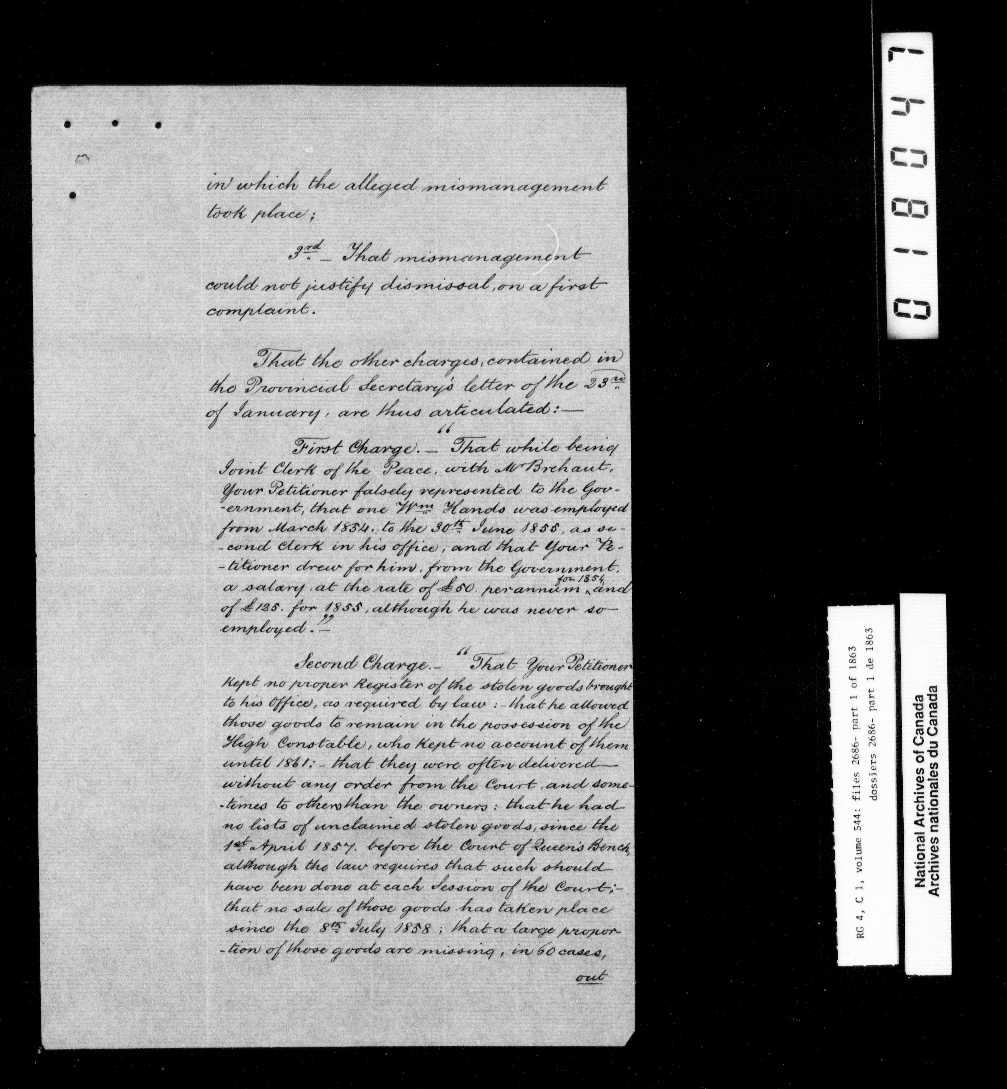 Canada East : Provincial Secretary numbered correspondence files, 1839-1867 - 2776