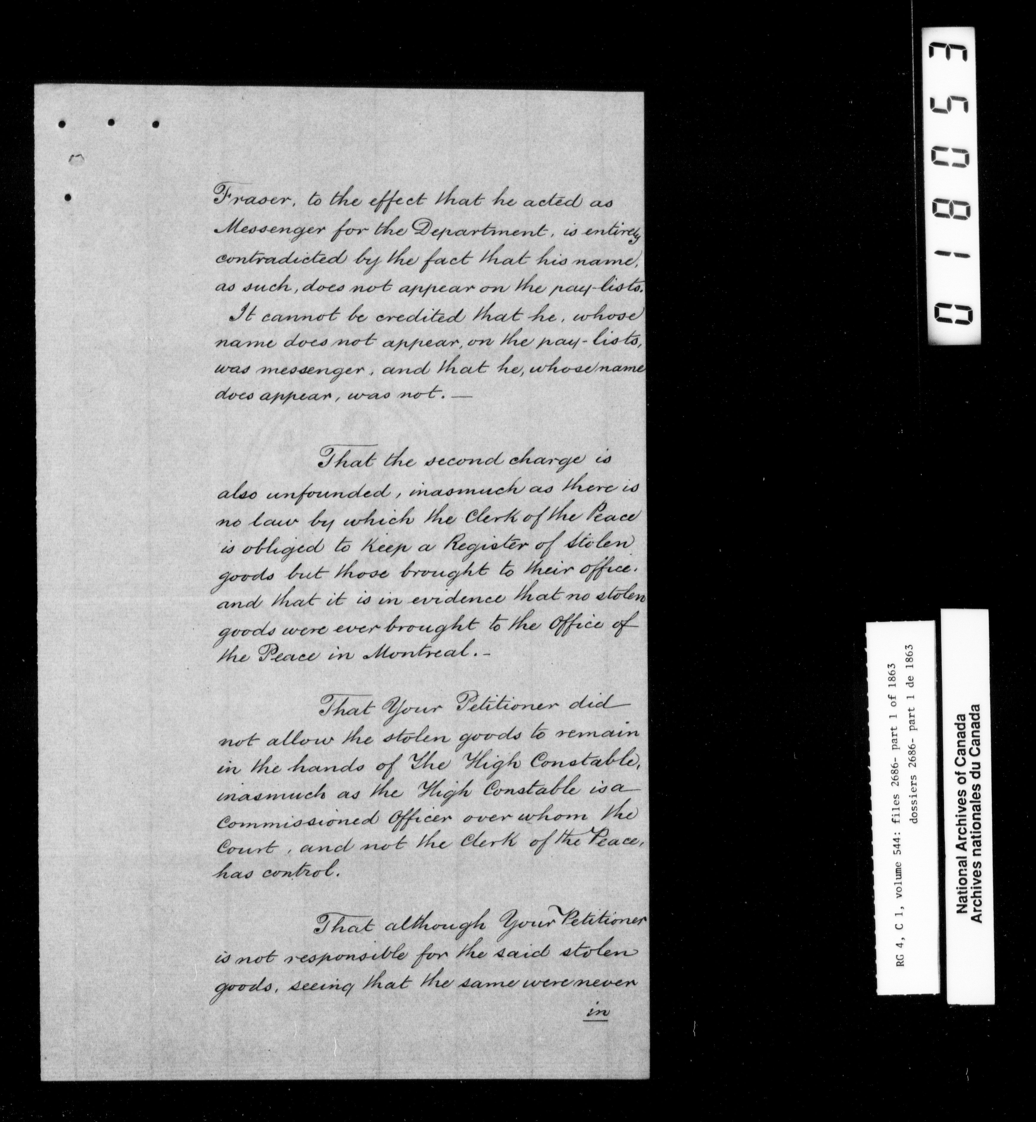 Canada East : Provincial Secretary numbered correspondence files, 1839-1867 - 2776