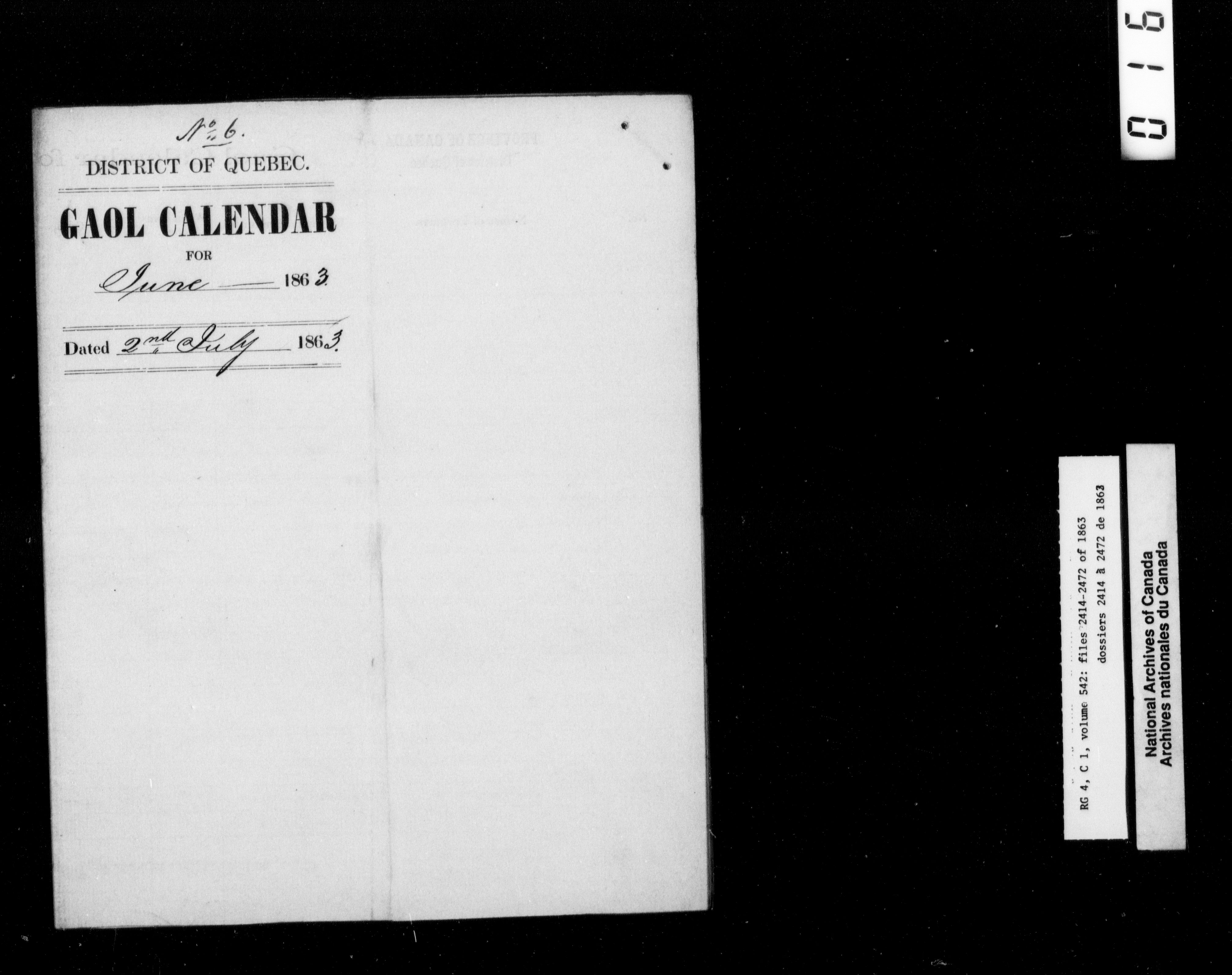 Canada East : Provincial Secretary numbered correspondence files, 1839-1867 - 2776