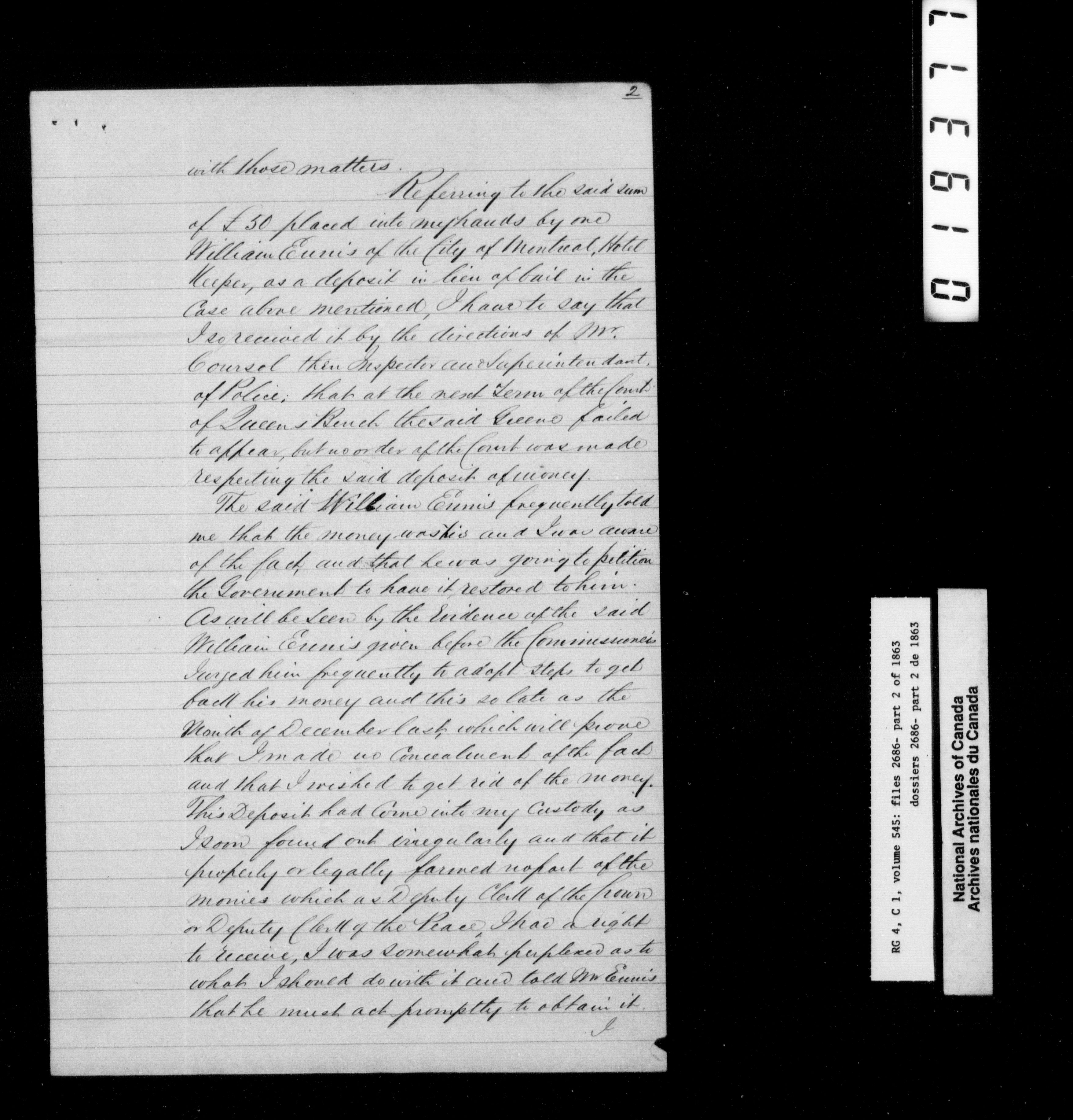 Canada East : Provincial Secretary numbered correspondence files, 1839-1867 - 2777