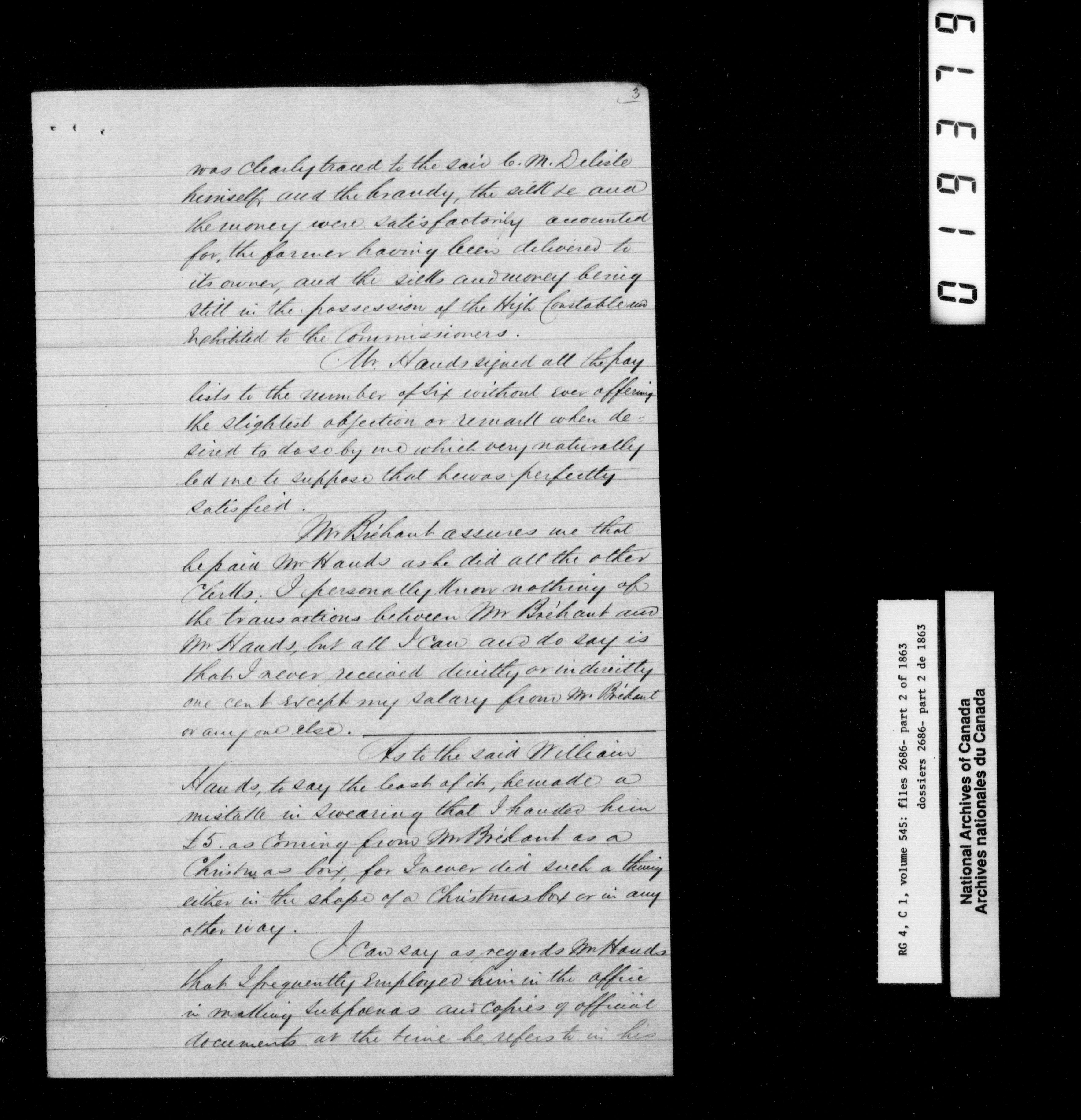 Canada East : Provincial Secretary numbered correspondence files, 1839-1867 - 2777