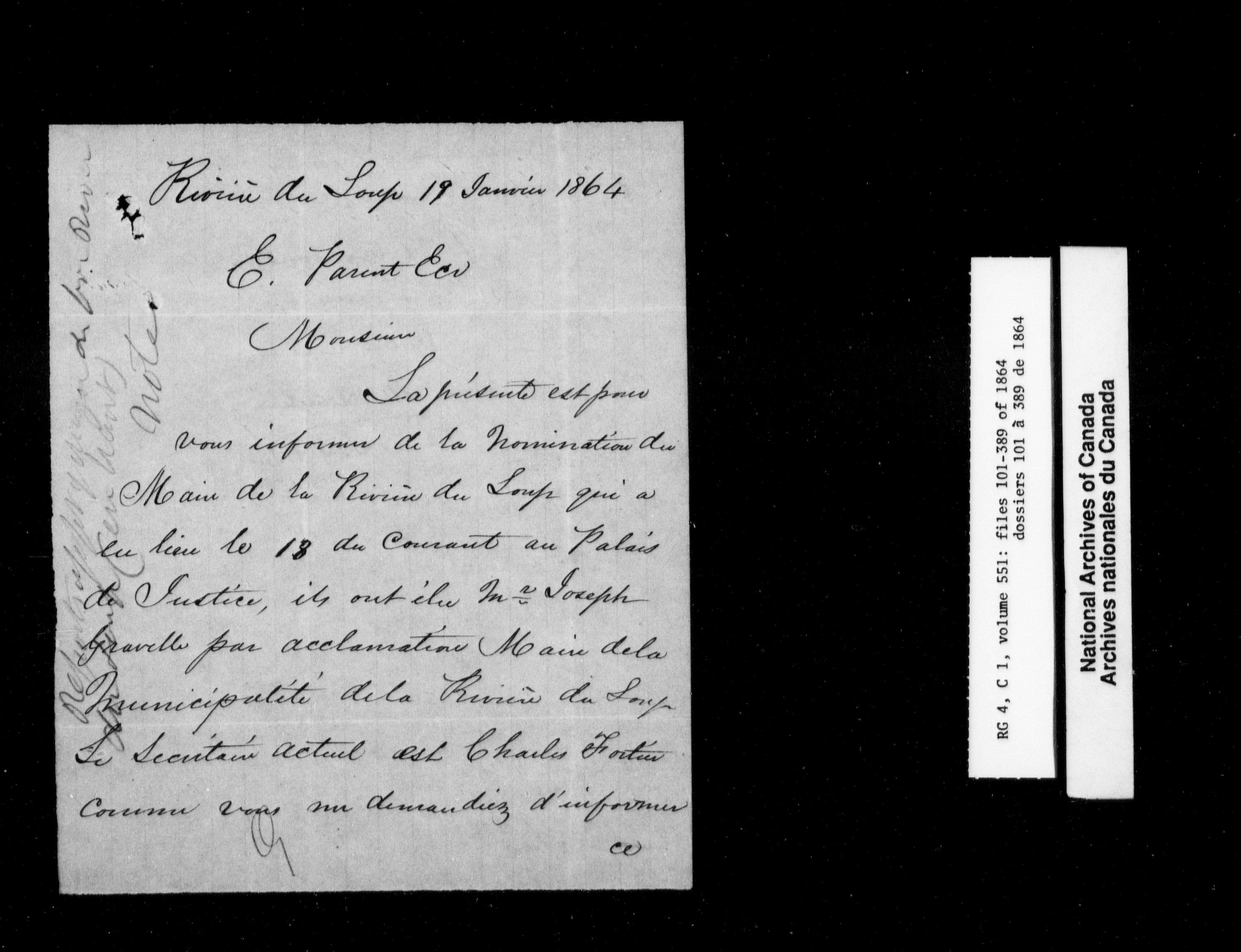 Canada East : Provincial Secretary numbered correspondence files, 1839-1867 - 2781