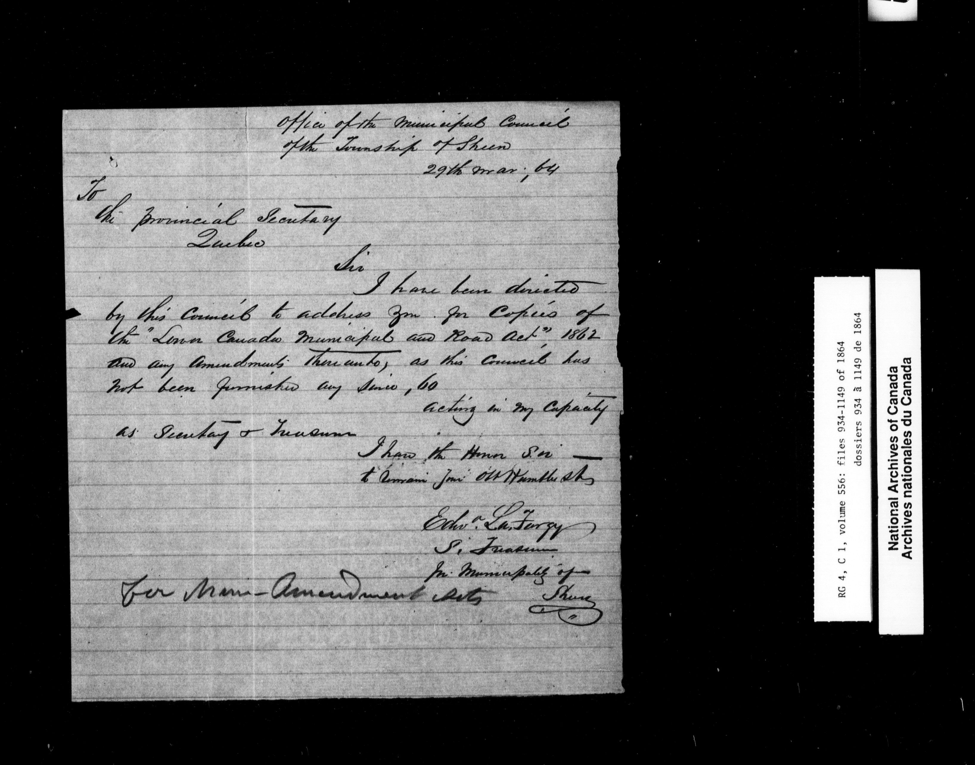 Canada East : Provincial Secretary numbered correspondence files, 1839-1867 - 2784