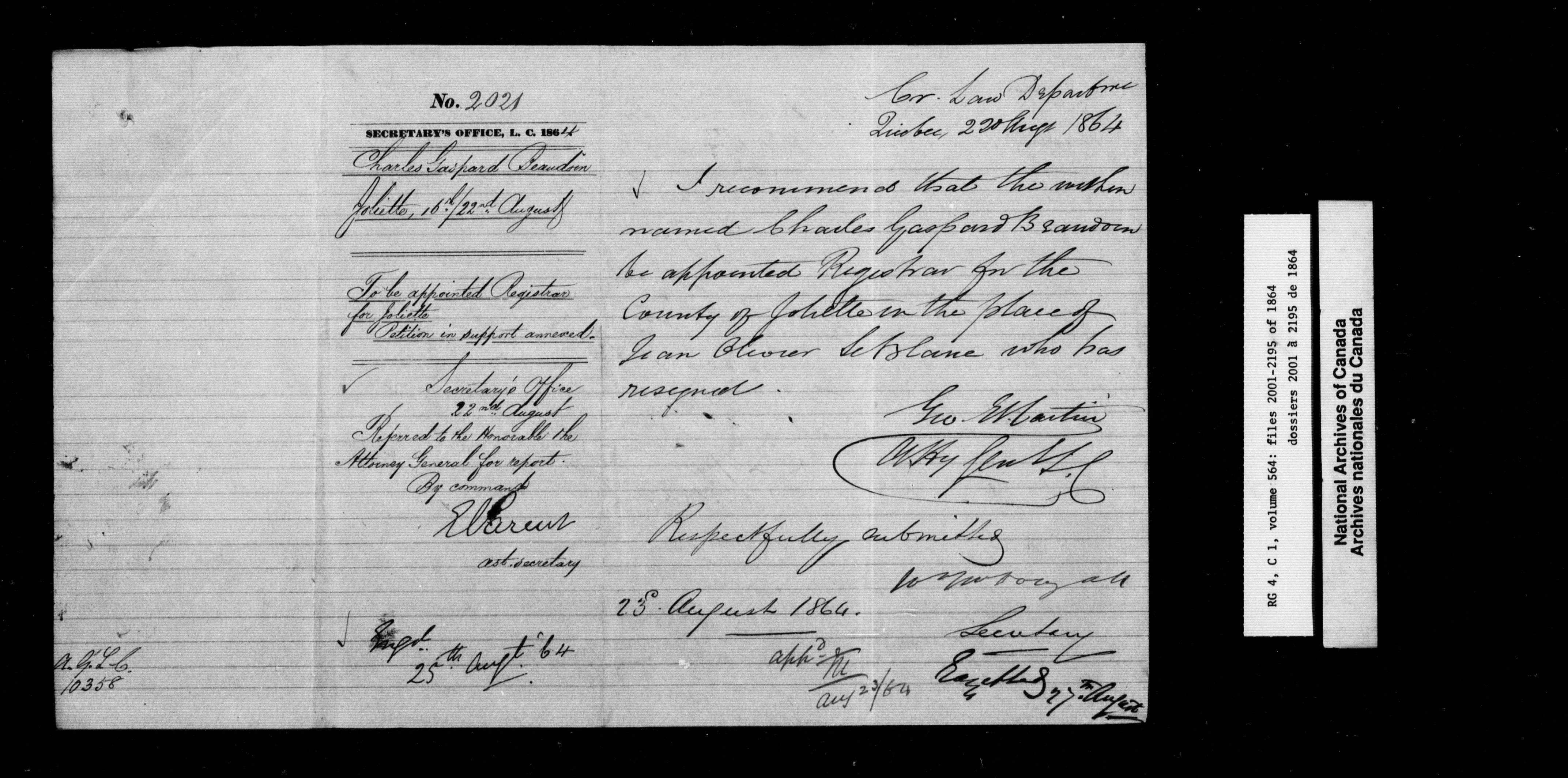 Canada East : Provincial Secretary numbered correspondence files, 1839-1867 - 2788