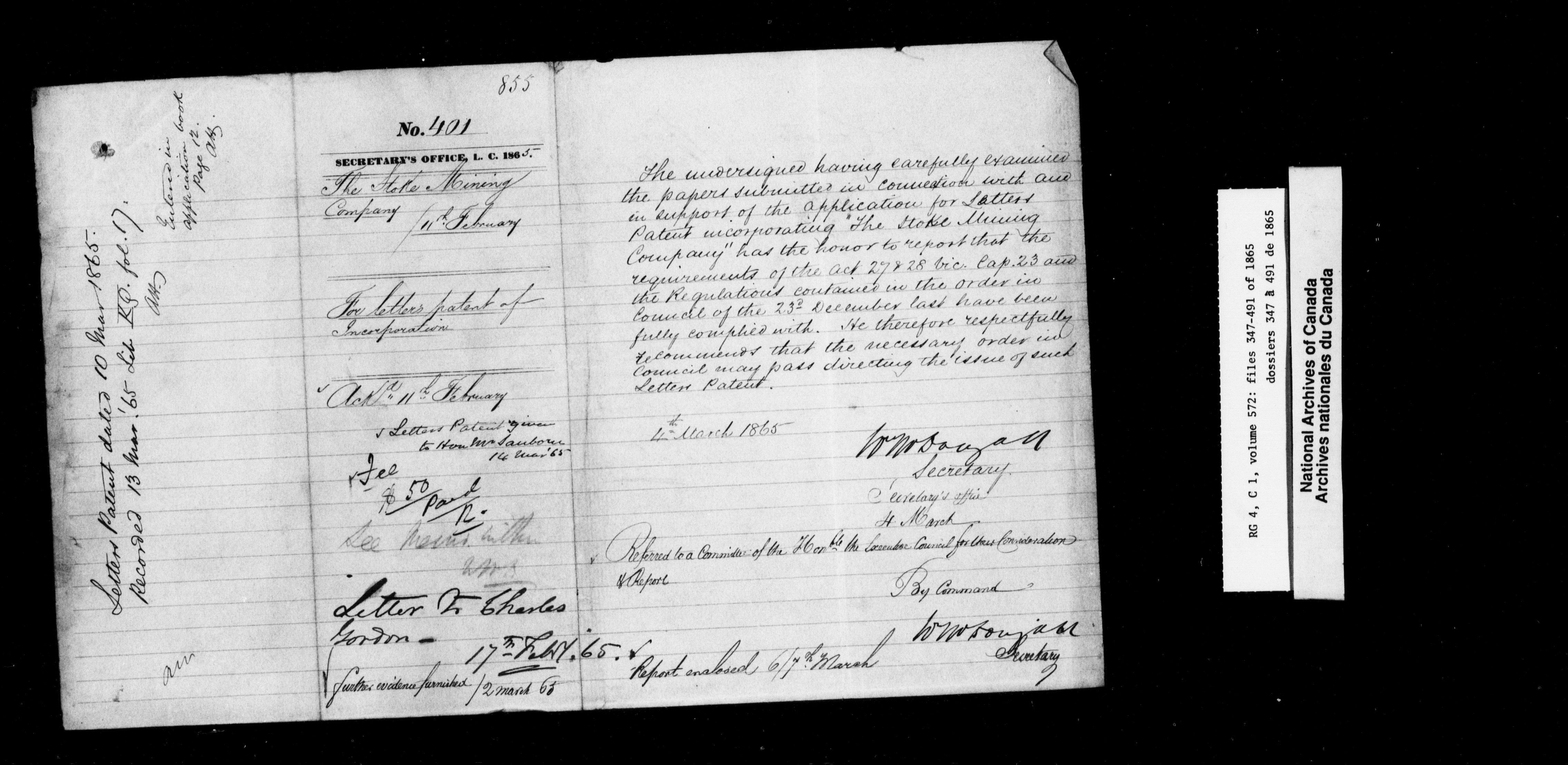 Canada East : Provincial Secretary numbered correspondence files, 1839-1867 - 2792