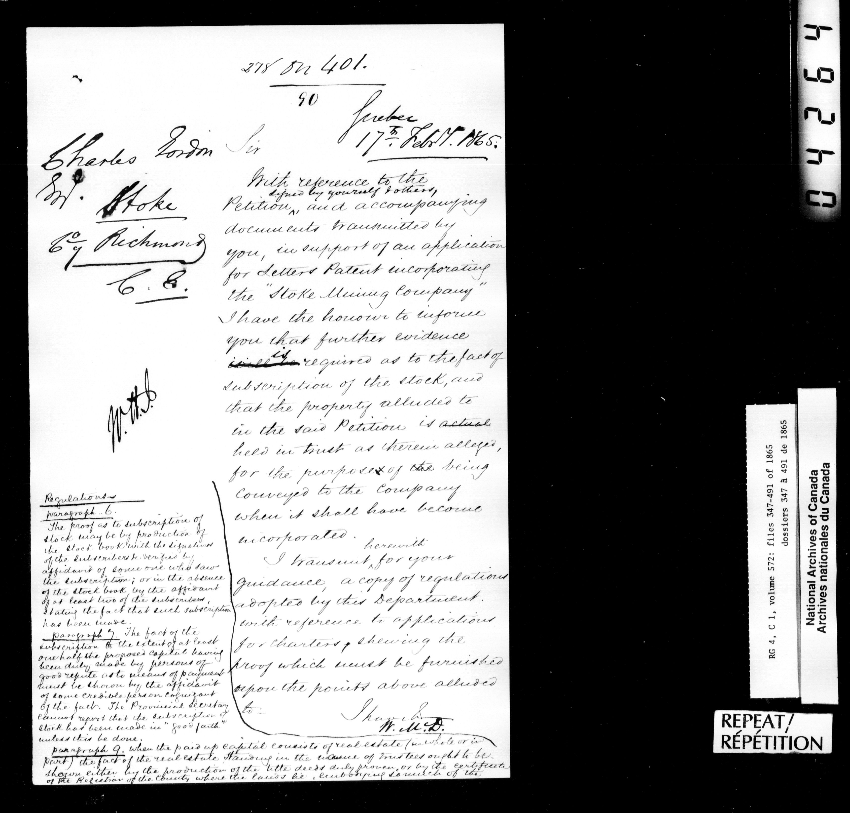 Canada East : Provincial Secretary numbered correspondence files, 1839-1867 - 2792
