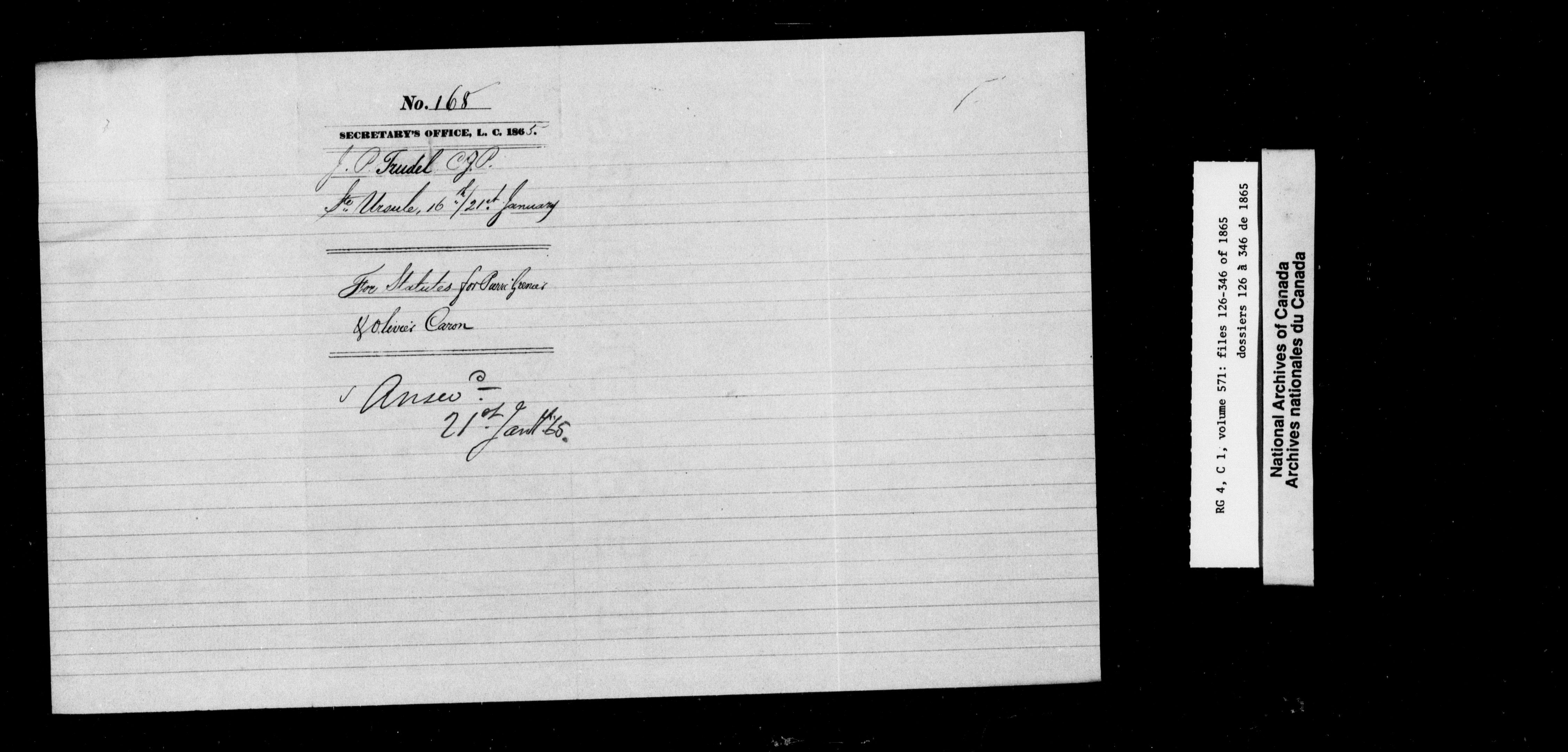 Canada East : Provincial Secretary numbered correspondence files, 1839-1867 - 2792