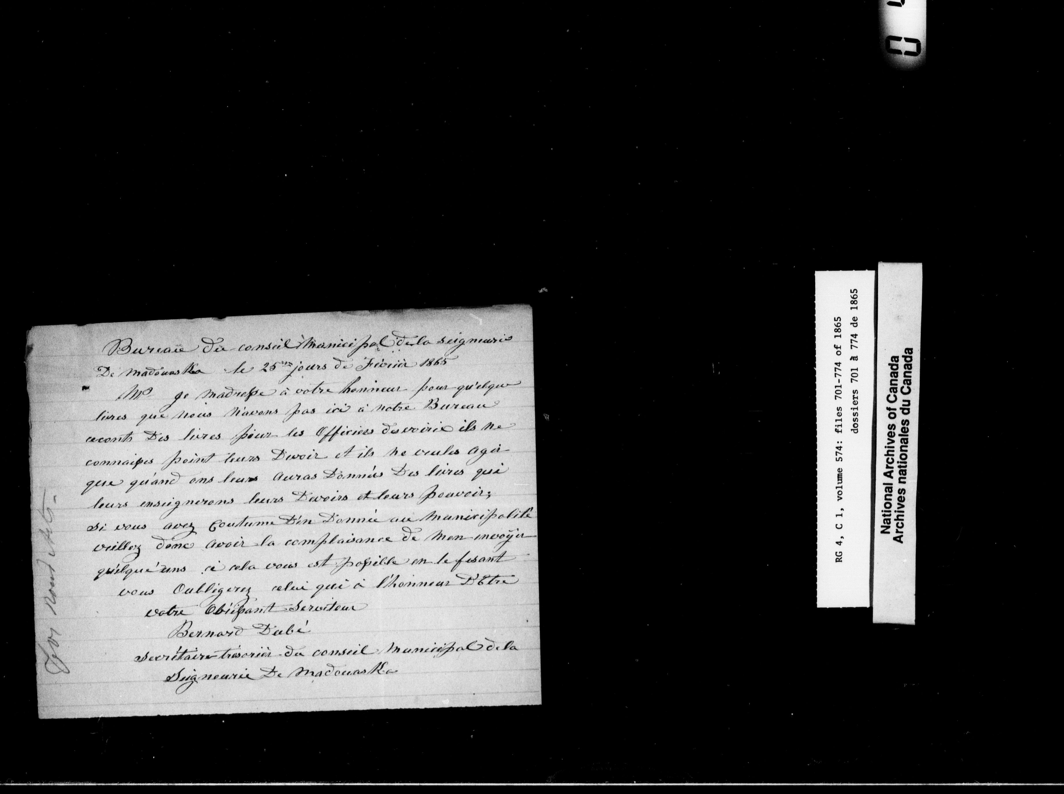 Canada East : Provincial Secretary numbered correspondence files, 1839-1867 - 2794
