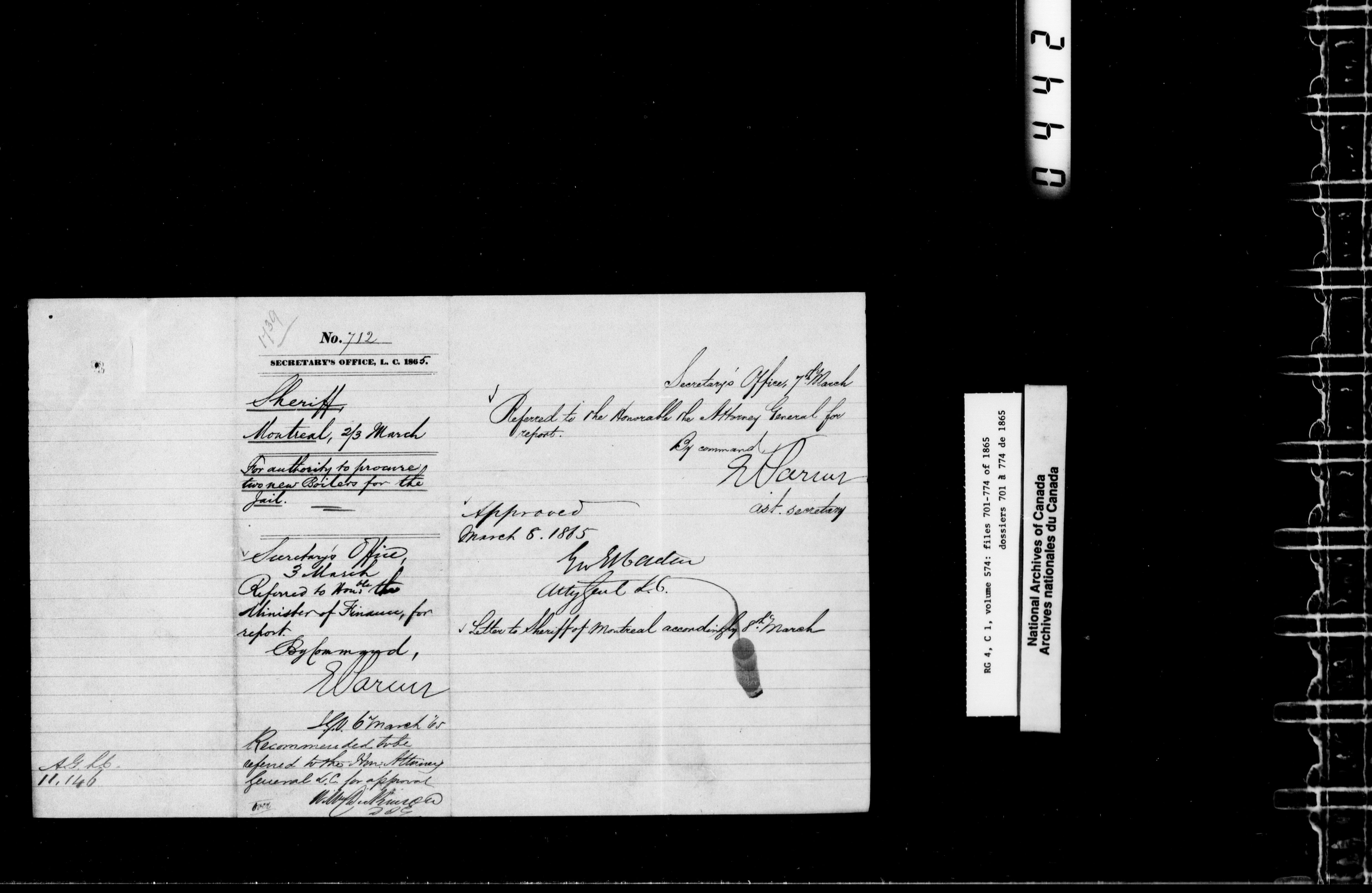 Canada East : Provincial Secretary numbered correspondence files, 1839-1867 - 2794
