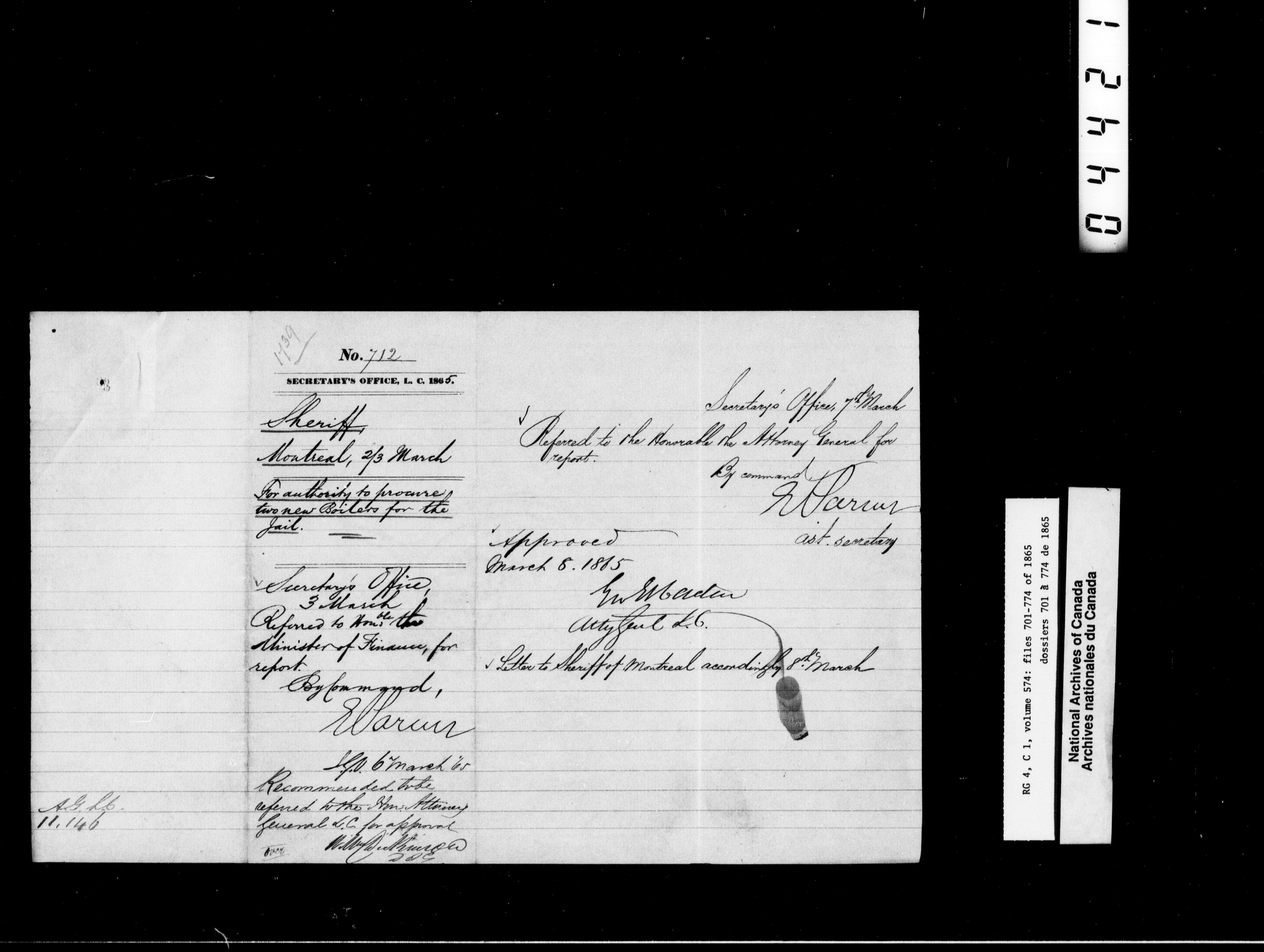 Canada East : Provincial Secretary numbered correspondence files, 1839-1867 - 2794
