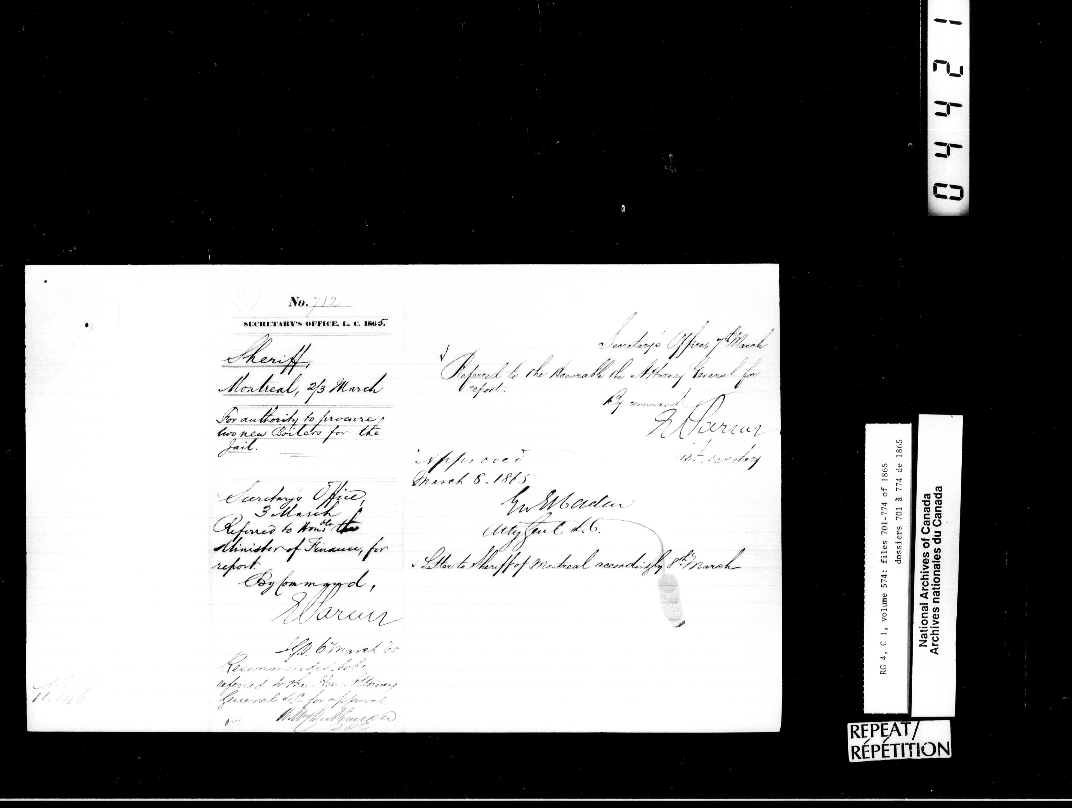 Canada East : Provincial Secretary numbered correspondence files, 1839-1867 - 2794