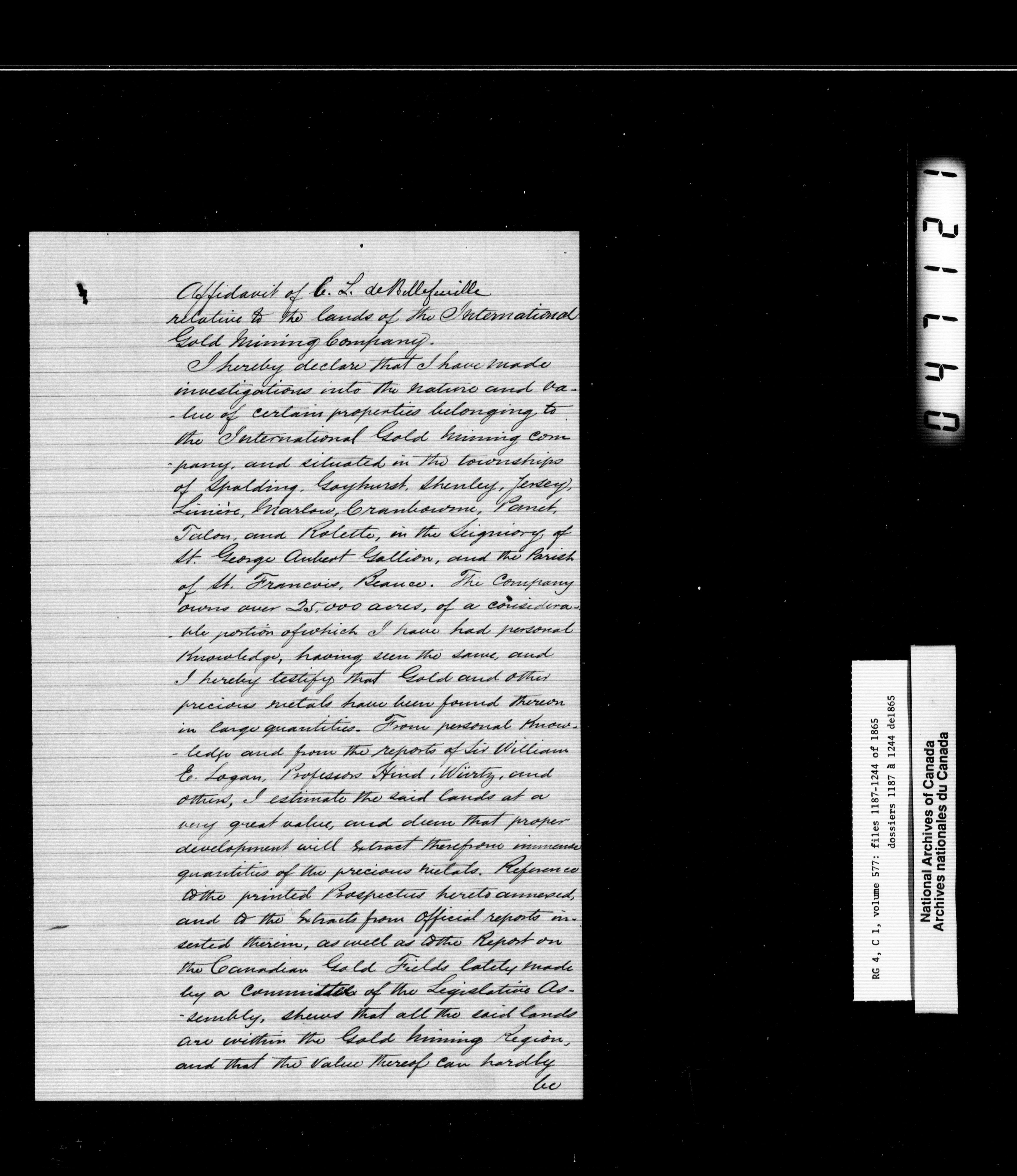 Canada East : Provincial Secretary numbered correspondence files, 1839-1867 - 2795