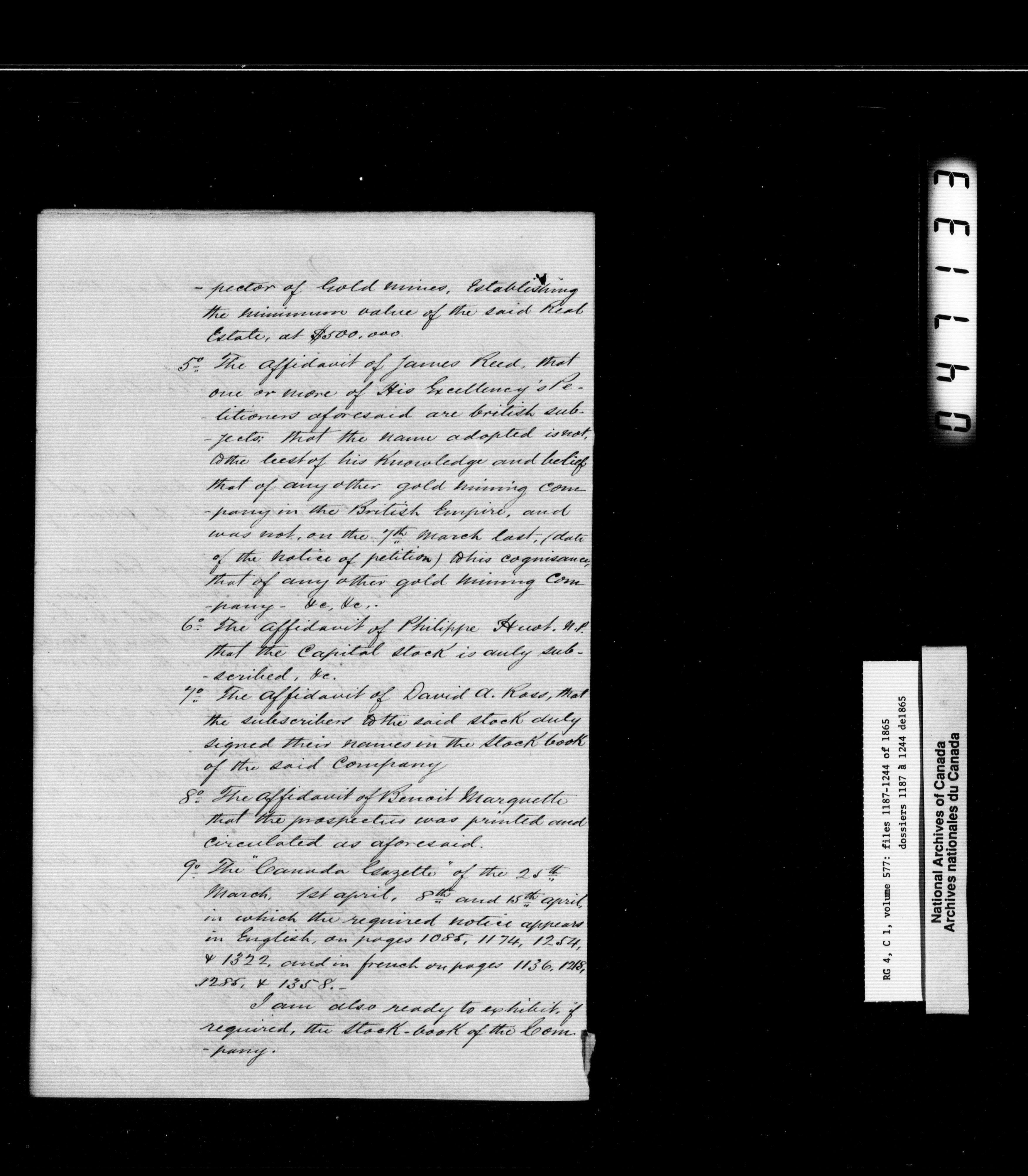 Canada East : Provincial Secretary numbered correspondence files, 1839-1867 - 2795