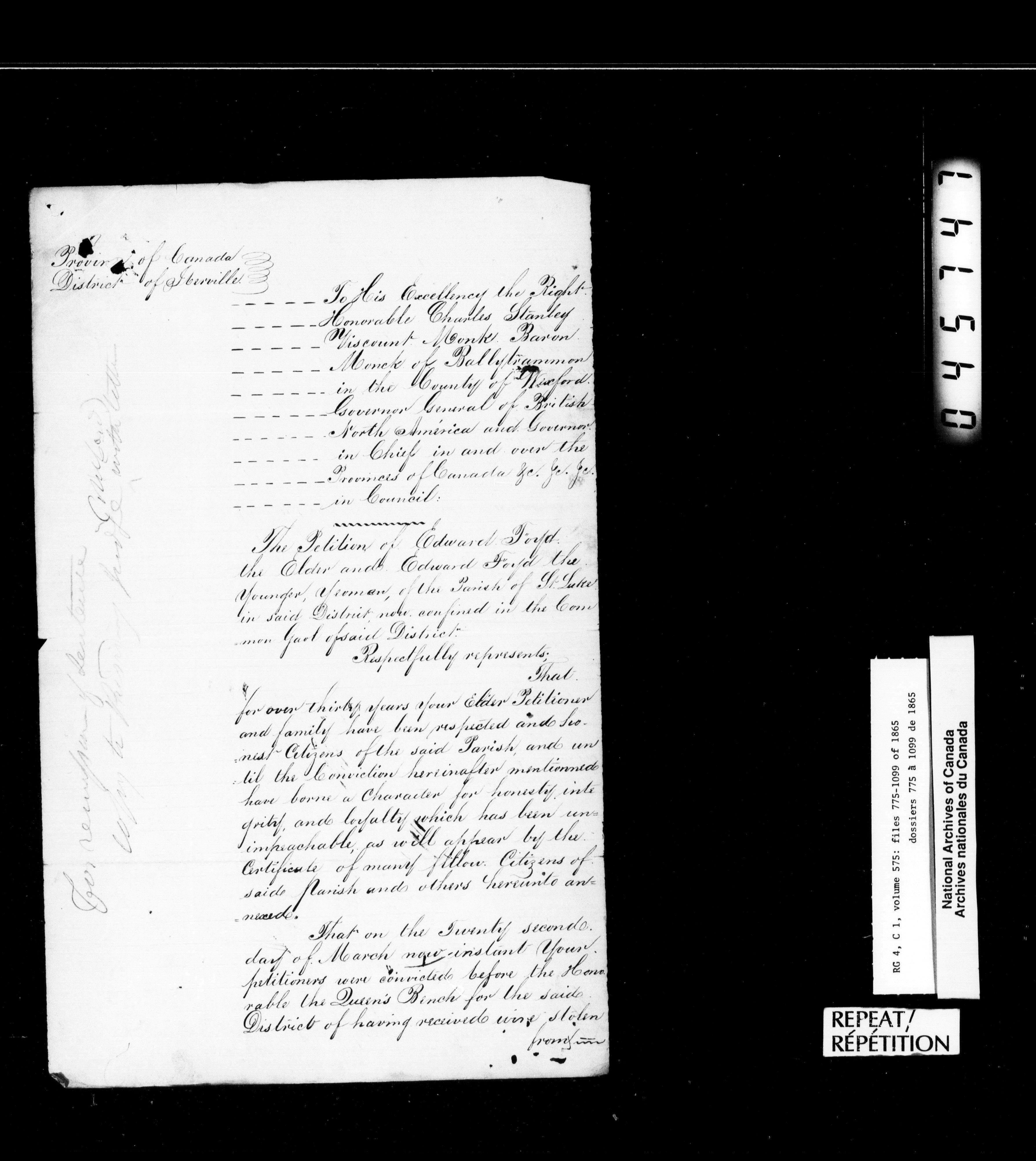 Canada East : Provincial Secretary numbered correspondence files, 1839-1867 - 2795