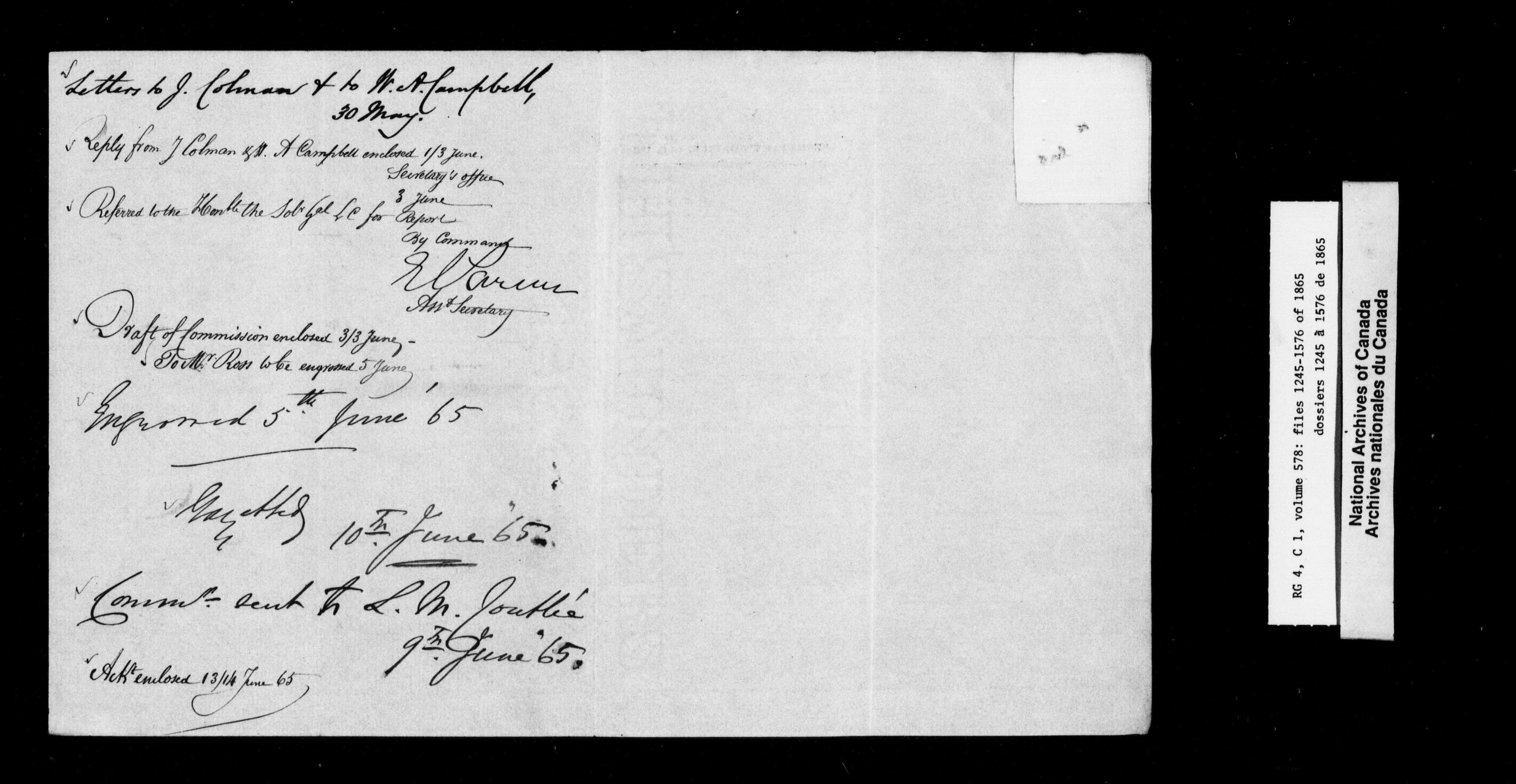 Canada East : Provincial Secretary numbered correspondence files, 1839-1867 - 2796