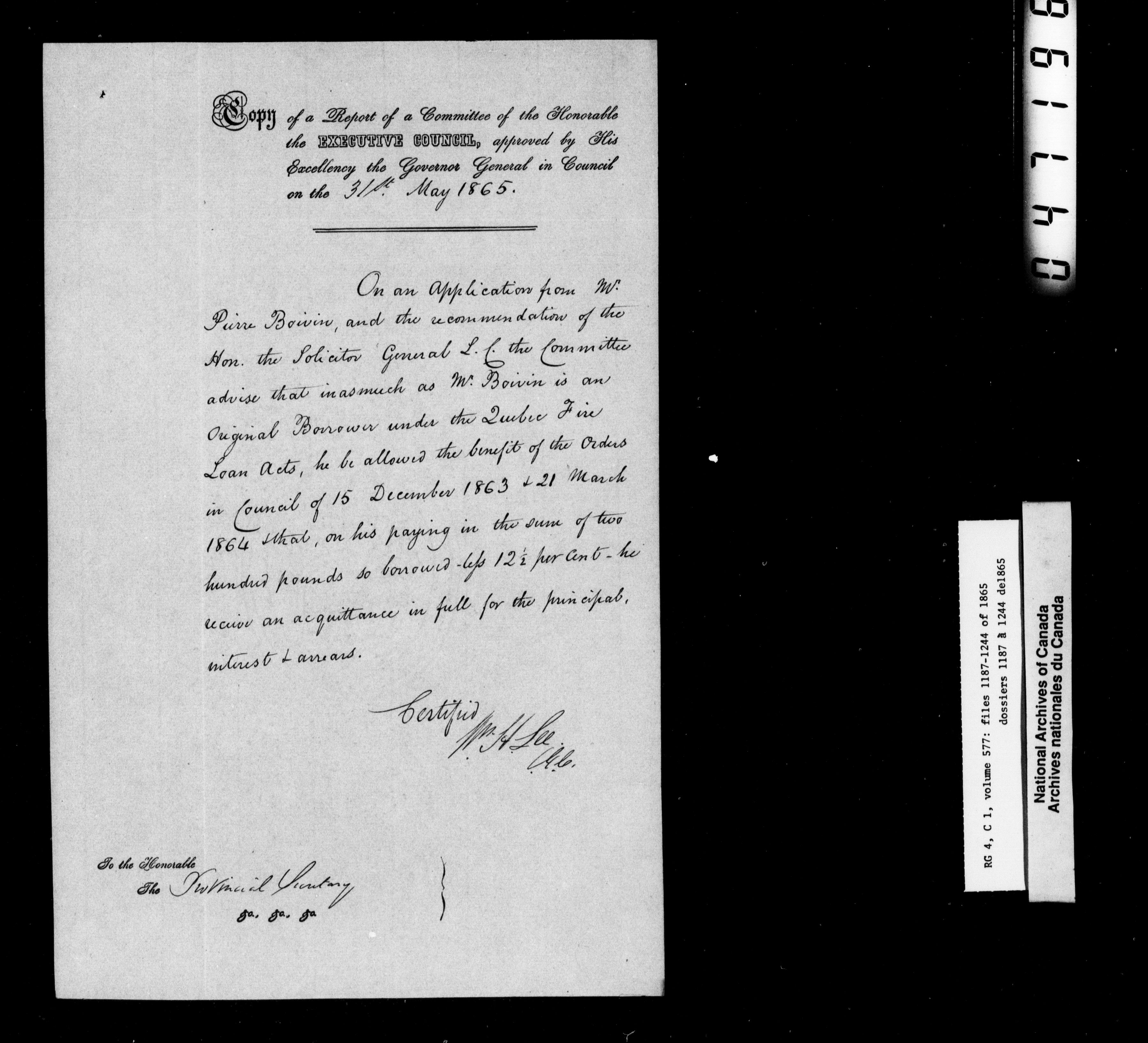 Canada East : Provincial Secretary numbered correspondence files, 1839-1867 - 2796