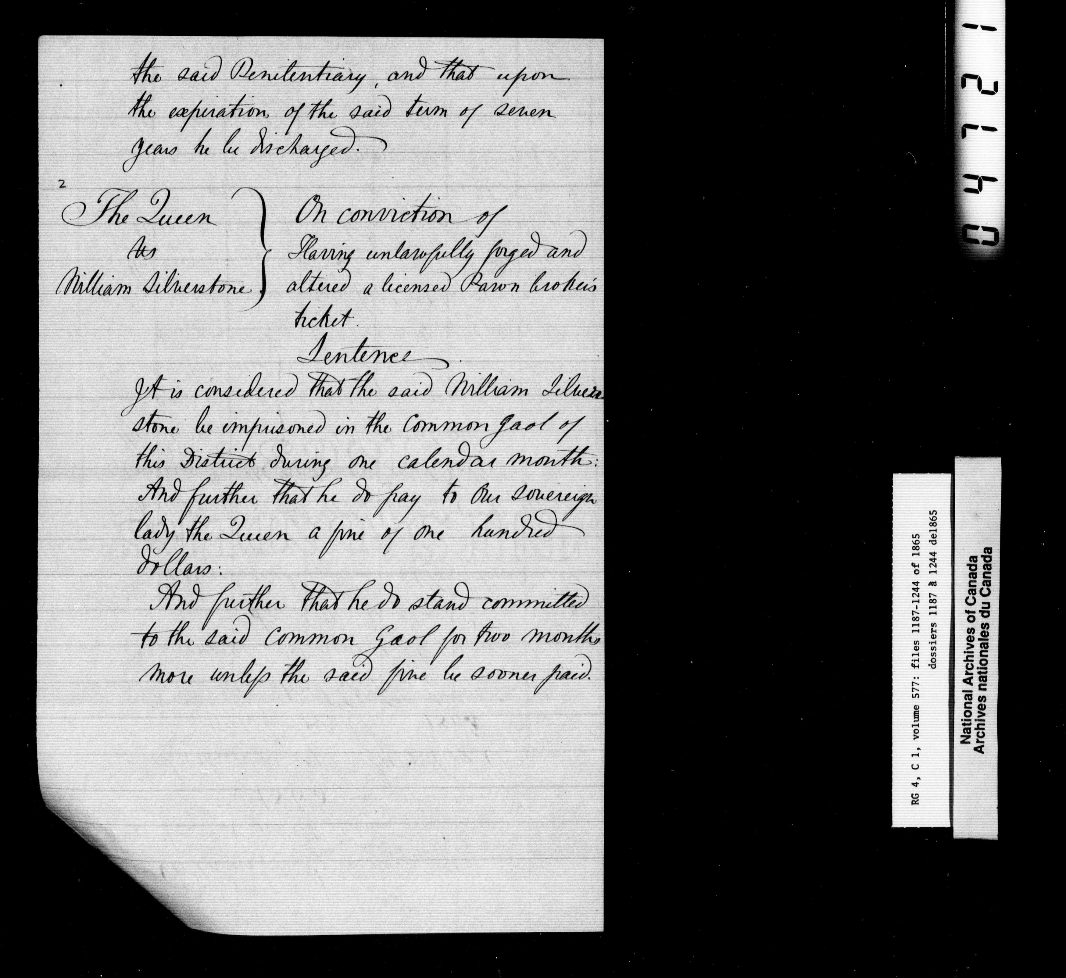 Canada East : Provincial Secretary numbered correspondence files, 1839-1867 - 2796