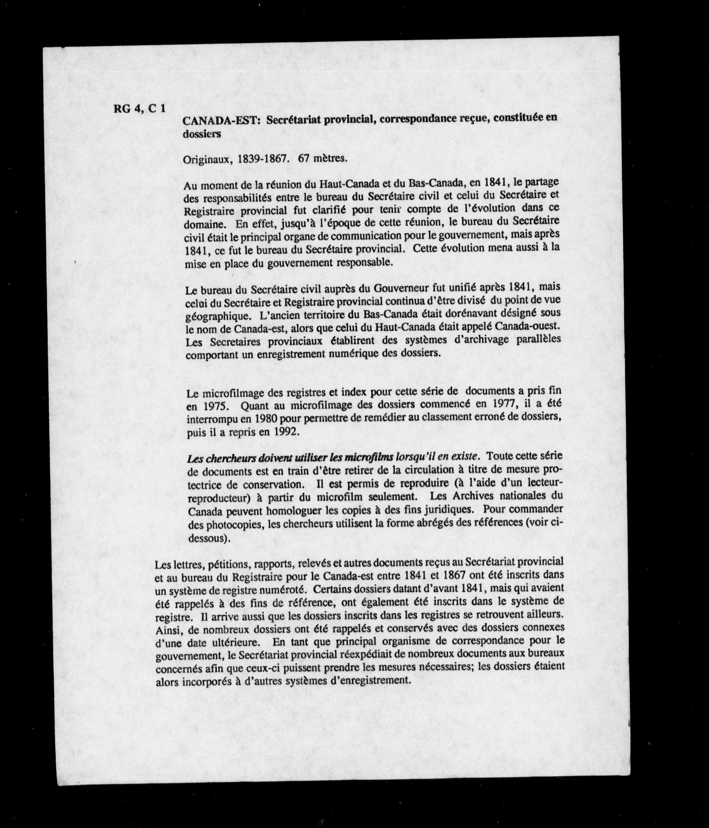 Canada East : Provincial Secretary numbered correspondence files, 1839-1867 - 2797
