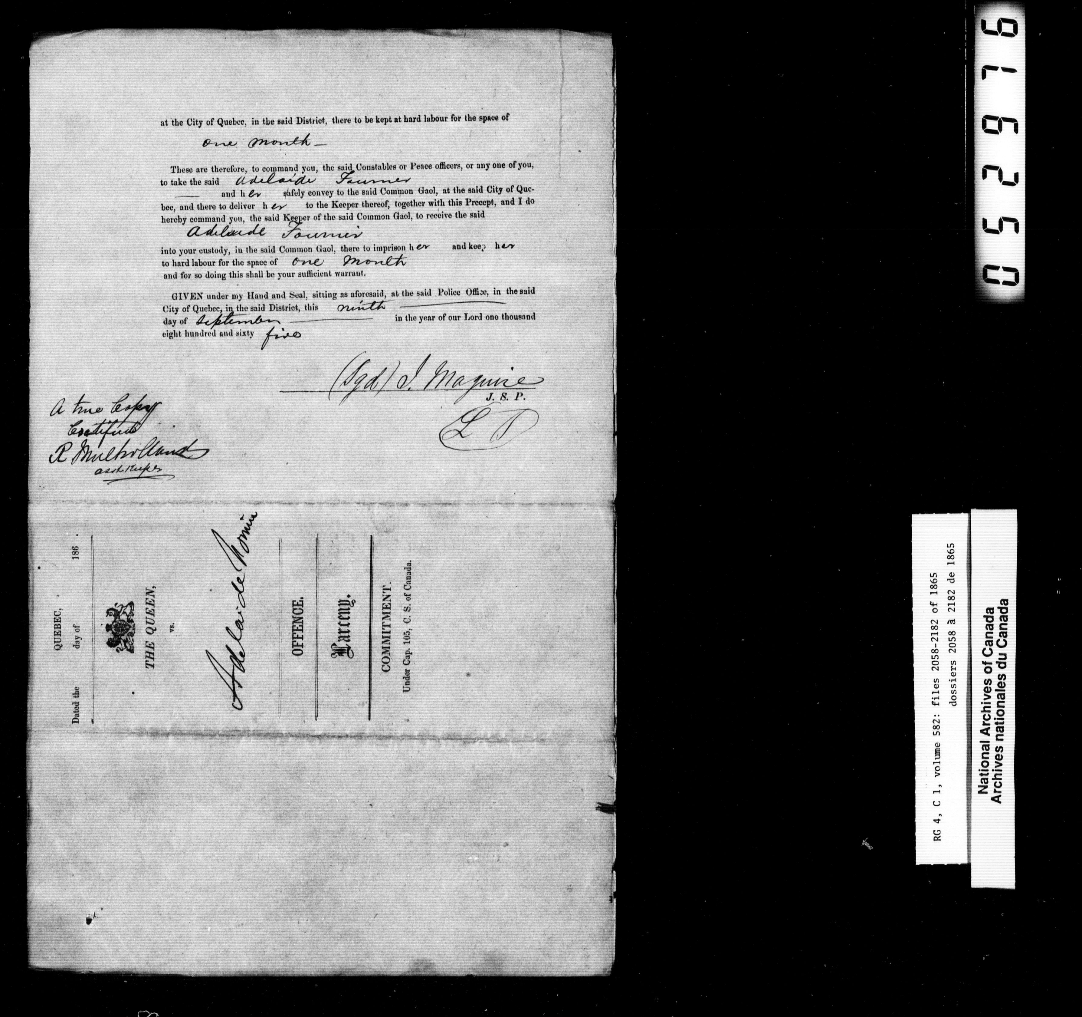 Canada East : Provincial Secretary numbered correspondence files, 1839-1867 - 2799